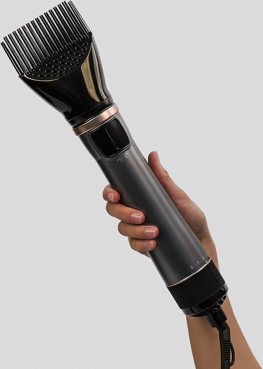 - Flexibele Styling: Met de twee meegeleverde borstels en verschillende instellingen kun je eenvoudig verschillende stijlen creëren.