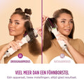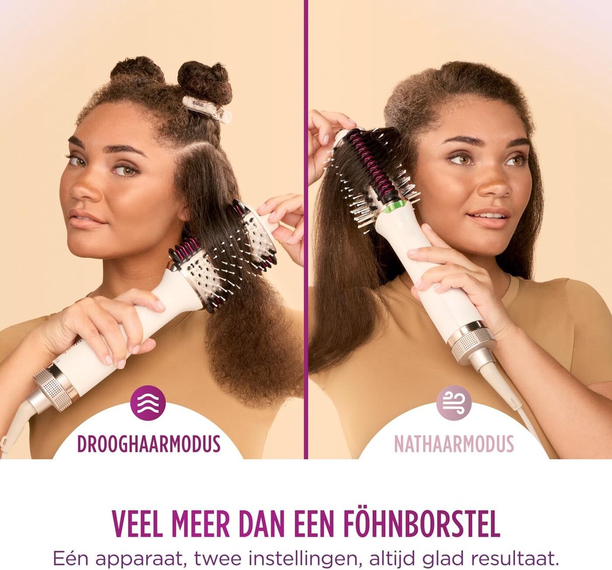 - Efficiënt: Bespaar tijd met een alles-in-één stylingtool die je haar droogt, volumiseert, vormt en gladstrijkt in één stap.