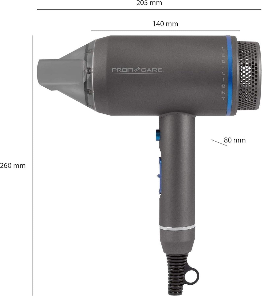 Haardroger met diffuser - Professioneel - Blauw-Antraciet - Accessoires - 1600 Watt Compact