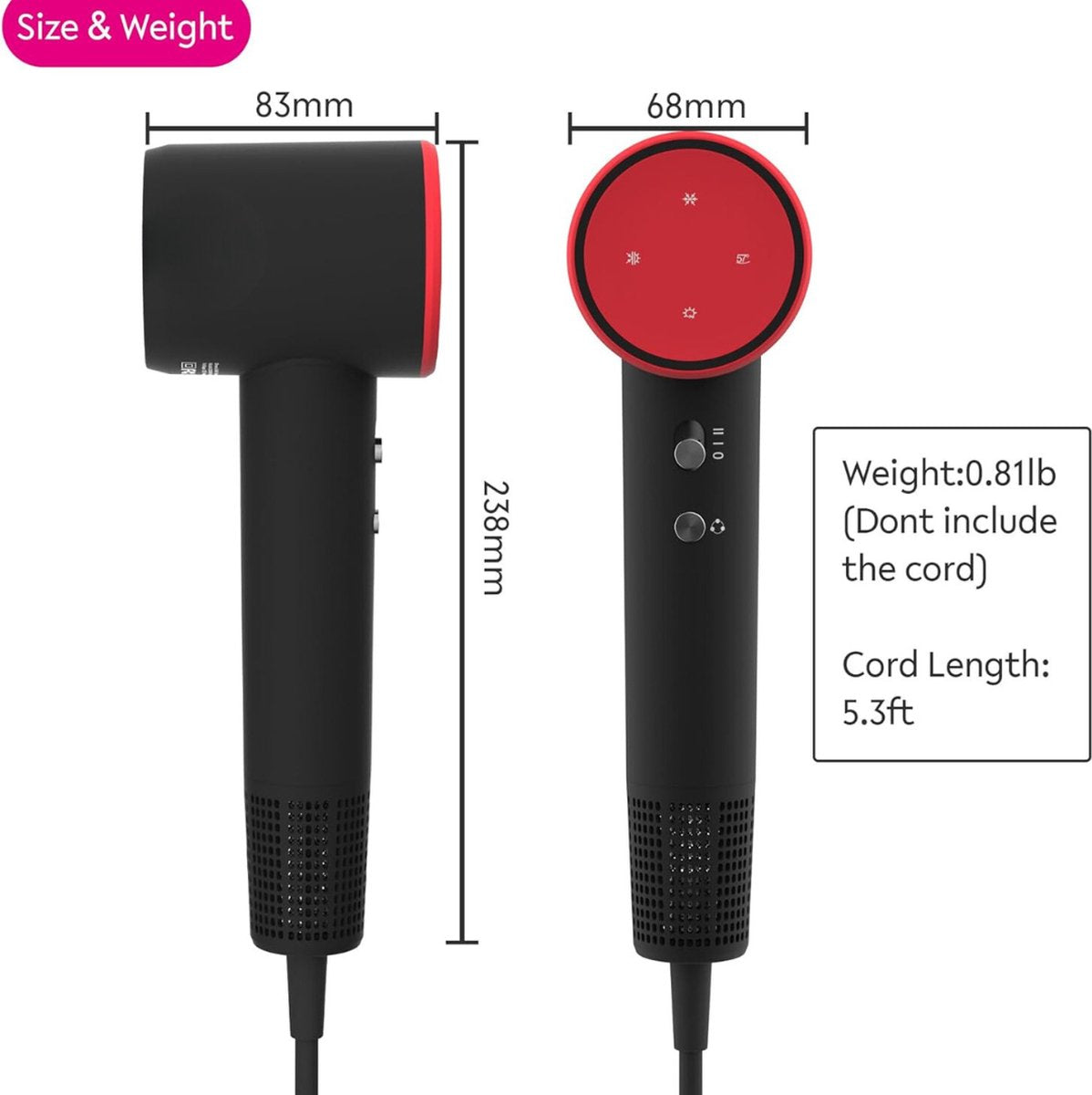 + Lichtgewicht en Compact Ontwerp: Met een gewicht van slechts 0,81 lb is deze föhn uitzonderlijk licht en gemakkelijk te gebruiken, zowel thuis als onderweg. Het compacte ontwerp biedt een geheel nieuwe föhnervaring, met meer kracht en minder geluid, ideaal voor dagelijks gebruik en op reis.