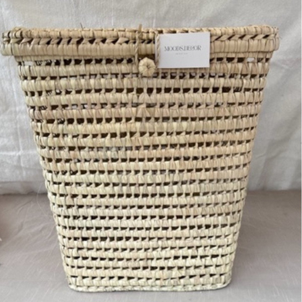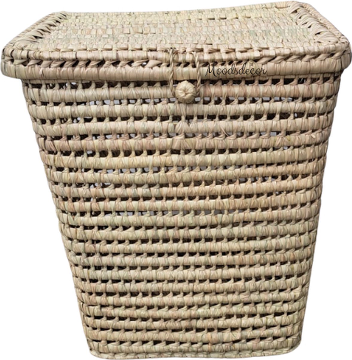 Laat je wasroutine een vleugje natuurlijke schoonheid en vakmanschap toevoegen met onze handgemaakte wasmand van palmblad, met een royale hoogte van 55 cm. Elke exemplaar is met zorg vervaardigd door bekwame ambachtslieden, waardoor een uniek stuk ontstaat dat zowel functioneel als esthetisch verbluffend is.