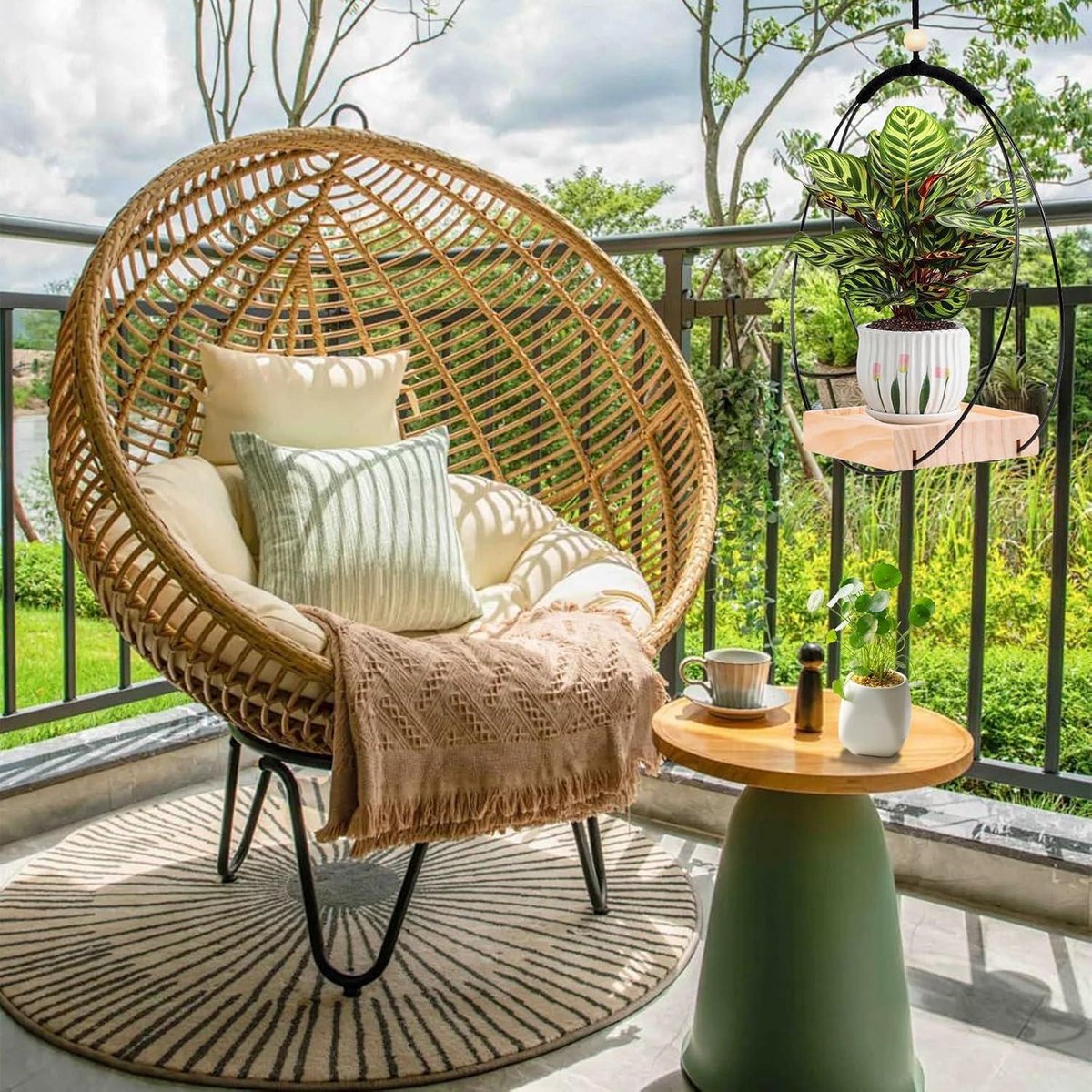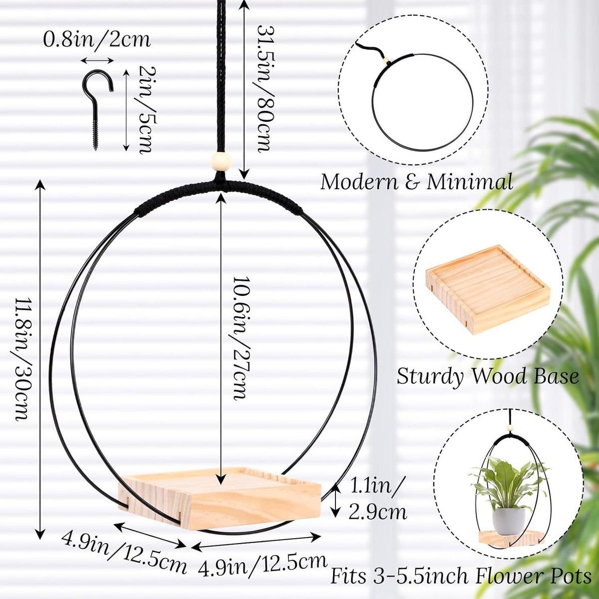 De ophangring is gemaakt van hoogwaardig gepoedercoat ijzer, terwijl de houten basis een fijn en glad oppervlak heeft. Het verstelbare katoenen koord is niet alleen flexibel, maar ook milieuvriendelijk. Deze hangmanden kunnen verschillende objecten dragen en blijven stabiel in diverse weersomstandigheden.