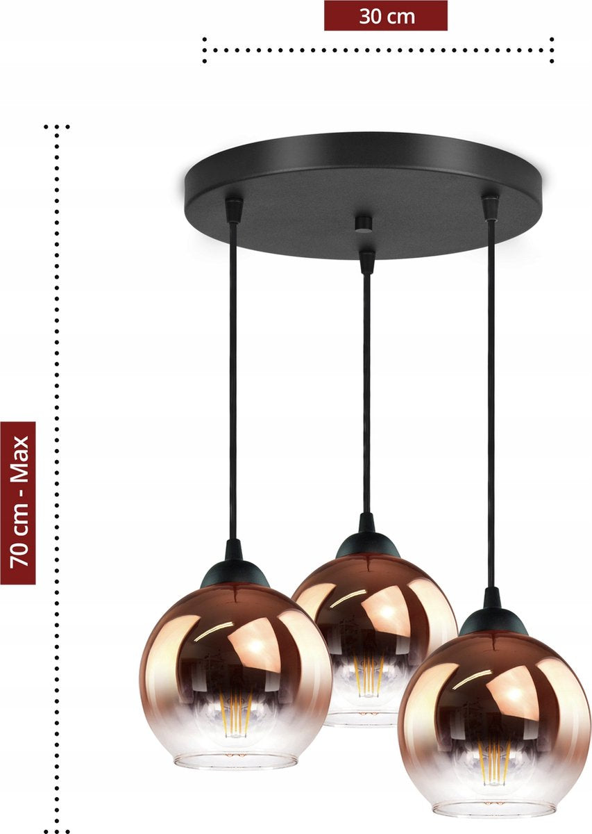 Hanglamp Industrieel voor Eetkamer, Slaapkamer, Woonkamer - Glass Serie - Bollamp 3-lichts excl. lichtbron - Koper - 3 Bol