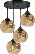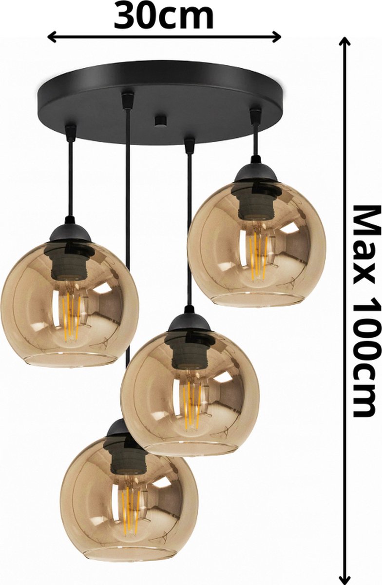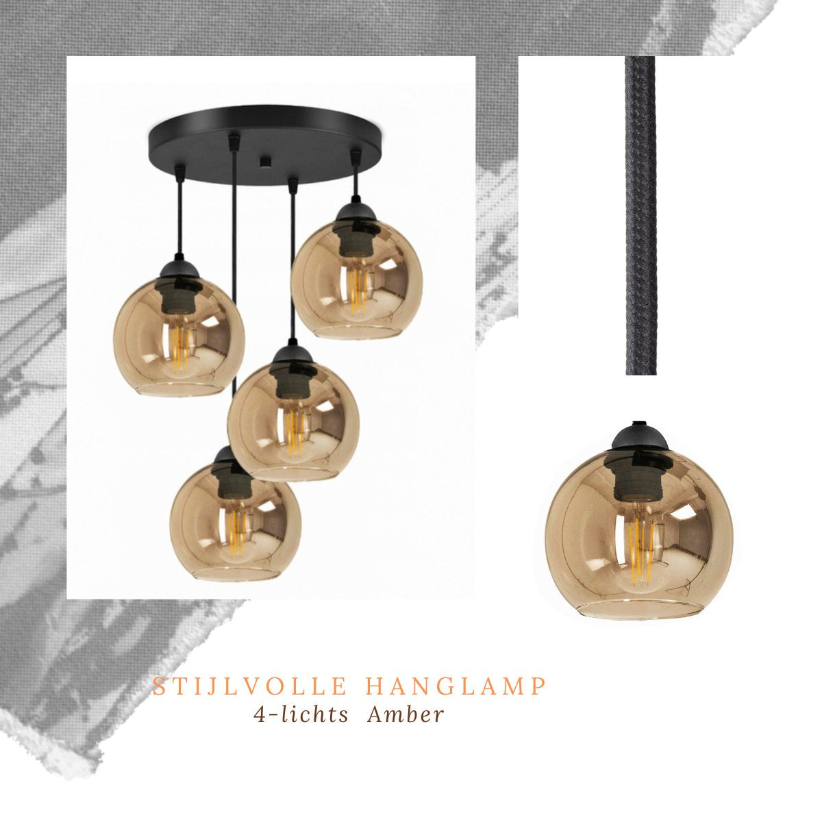 Hanglamp Industrieel voor Eetkamer, Slaapkamer, Woonkamer - Glass Serie - Bollamp 4-lichts excl. lichtbron - Amber - 4 Bol