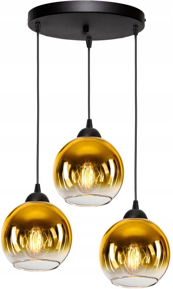Hanglamp Industrieel voor Woonkamer, Eetkamer - Glas - 3-lichts - Zwart Goud Transparant