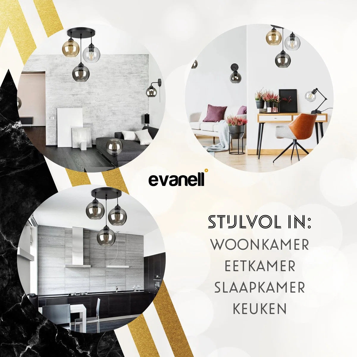 De drie glazen bollen creëren een betoverend lichtspel in je kamer. Het licht wordt op een unieke manier gereflecteerd, waardoor een warme en uitnodigende sfeer ontstaat die je interieur tot leven brengt.