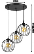 Hanglamp industrieel Met 3 Metalen Draadkappen Met Een Zwarte Constructie