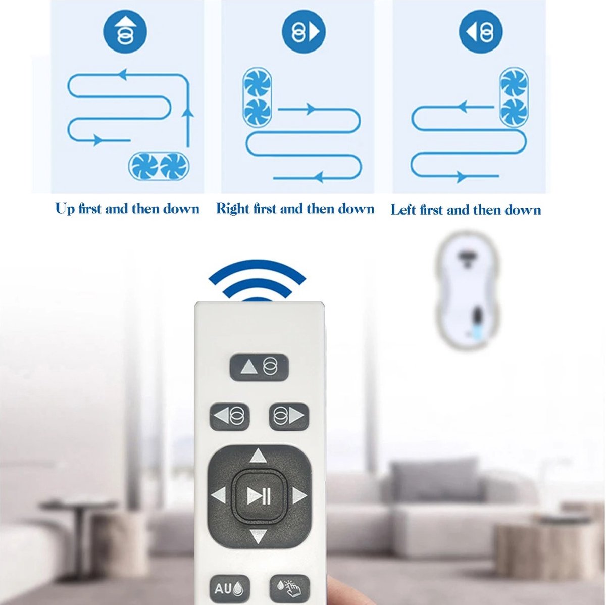 - Belangrijkste functies: geplande reiniging met gyroscoop, automatische enkelzijdige reiniging, automatische terugkeer naar startpositie.