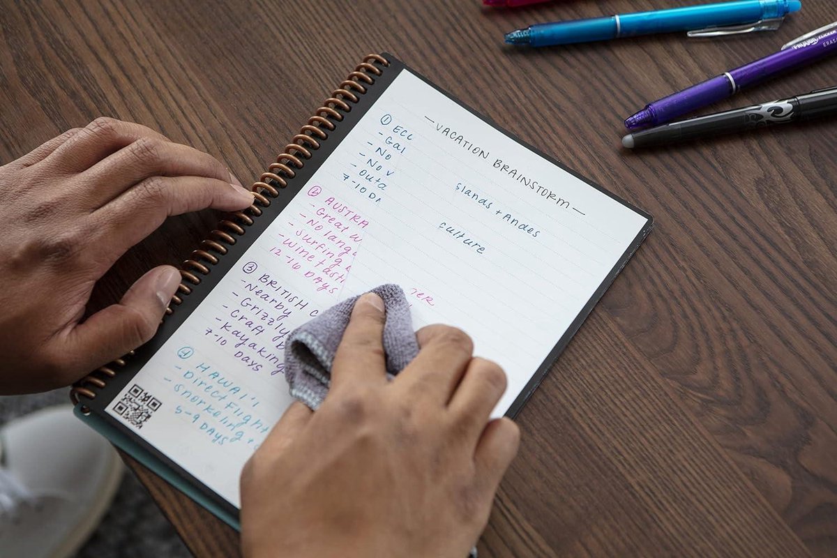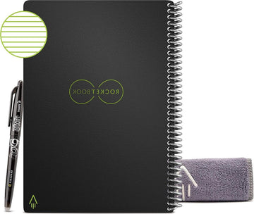 Herschrijfbaar Digitaal Notitieboekje - Letter A4 Zwart - Elektronisch Notitieblok met Gelinieerde Pagina's - Incl. Pilot Frixion Pen en Microvezeldoek Kladblok