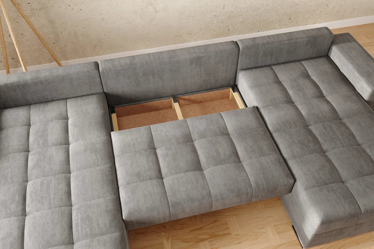 Hoekbank Josua structuur velvet stof - hoekzetel met bed en opbergruimte - wooneiland zitbank