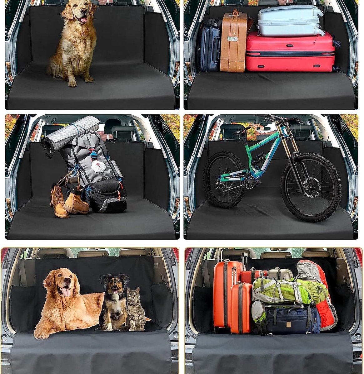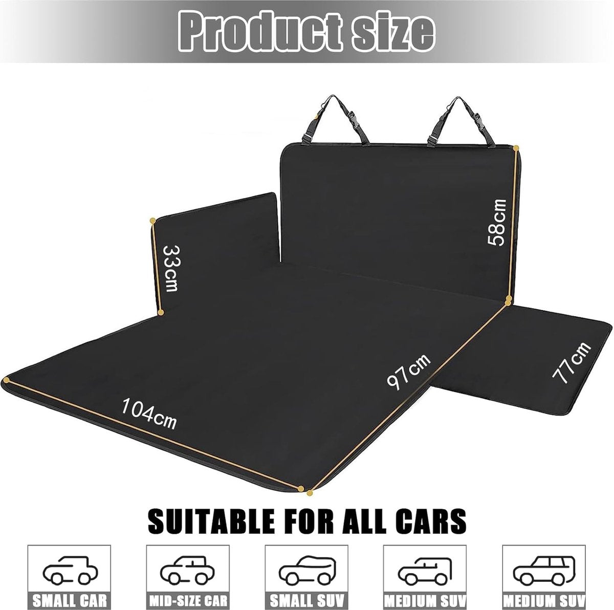 Effectieve Bescherming: De kofferbakbescherming is gemaakt van hoogwaardig Oxford-stof dat krasbestendig, schokbestendig, spatwaterdicht en gemakkelijk te reinigen is. Het beschermt uw stoelen tegen hondenurine, dierenhaar en krassen. De beschermhoes voorkomt dat uw hond tijdens het remmen wegglijdt. Twee openingen in de kofferbakbescherming voorkomen verwondingen aan de hond bij plotselinge bewegingen of scherpe bochten.