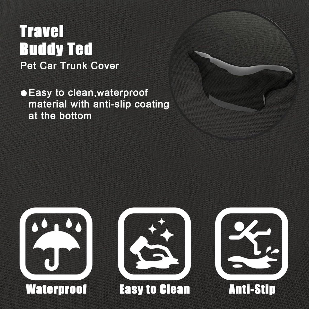 Hoogwaardig Materiaal: Gemaakt van hoogwaardig Oxford-stof, PVC-coating, PP-katoen, polyester voering en een antislipnet. De combinatie van deze materialen zorgt voor uitstekende demping, water- en slipbestendigheid, slijtvastheid en scheurbestendigheid. De kofferbakbescherming beschermt uw lading of huisdier tegen schade en vermindert het geluid tijdens het transport.
