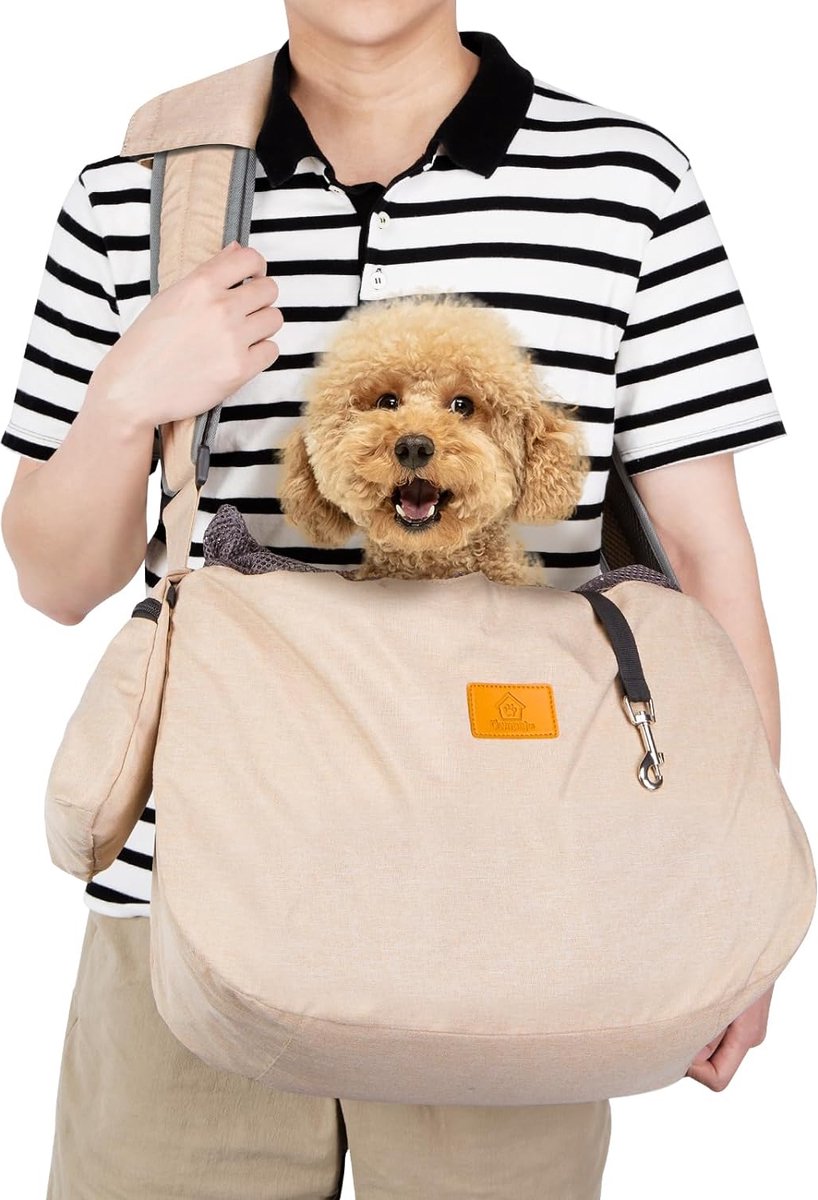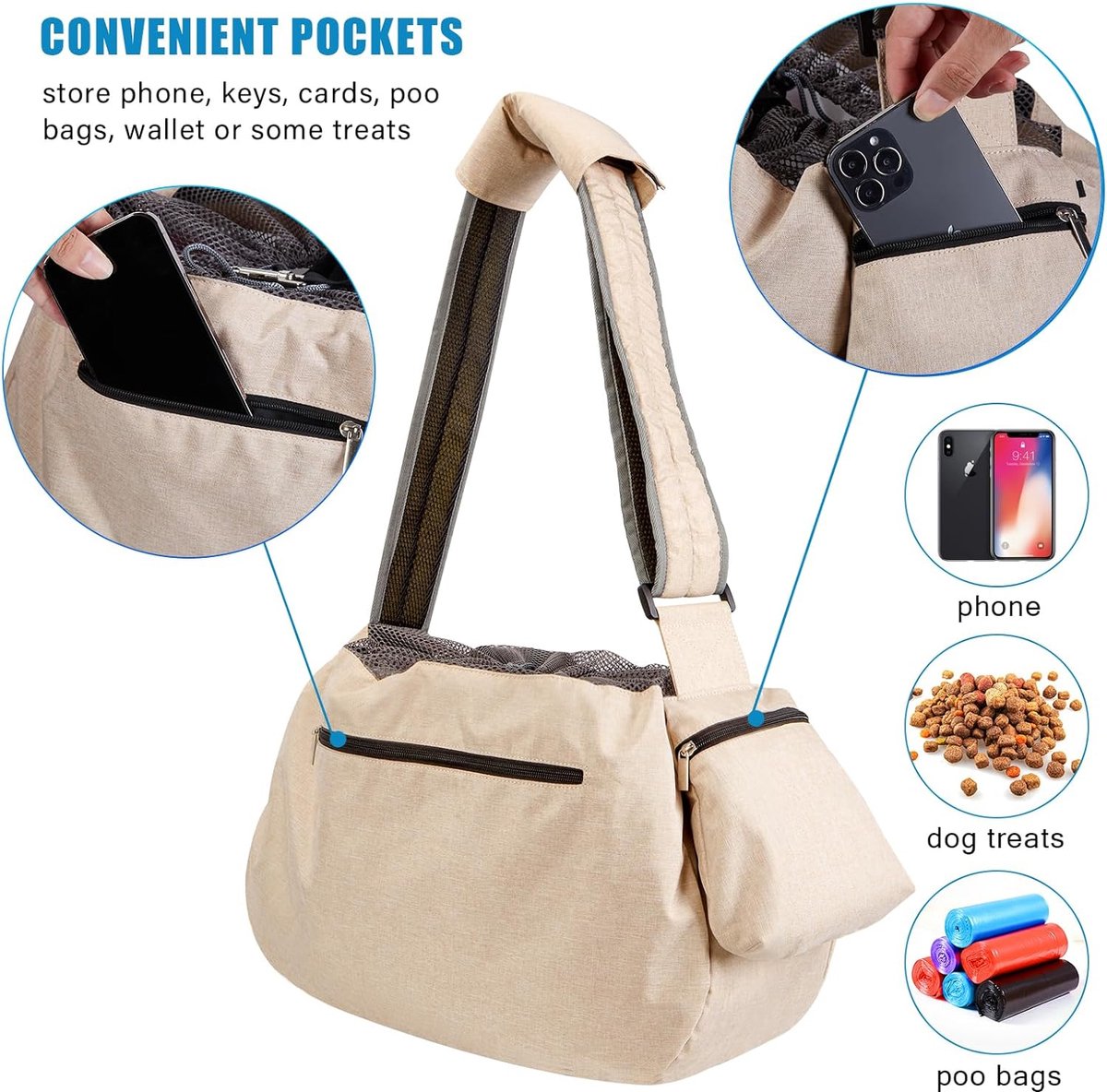 Comfortabel en zacht】De dierentas voor huisdieren is gemaakt van hoogwaardig Oxford-materiaal, zacht, duurzaam. Het ademende gat en het mesh-materiaal zorgden beide voor het ademend vermogen. De binnenvoering is zijdeachtig en zacht, waardoor uw hond een comfortabel en huidvriendelijk verblijf bij u heeft. 【Handsfree ontwerp en tas】: Dierentas voor honden helpt u huisdieren mee te nemen naar winkelcentra, supermarkten, metro's, parken en dagelijkse wandelingen of uitstapjes. Het houdt uw huisdieren veilig terwijl u uw handen vrij houdt. Ook heeft de hondendraagtas een voorvak voor persoonlijke spullen zoals snacks, poepzakjes, contant geld, mobiele telefoons of sleutels. 【Veiligheidsontwerp en onderhoud】: De draagzak voor huisdieren bevat een halsbandhaak die wordt aangesloten op de halsband van het huisdier en voorkomt dat deze in de hondendraagtas springt. Ideaal voor reizen, wandelen, winkelen en buitenactiviteiten. Hondendraagtas is machinewasbaar. En hij is gemakkelijk op te bergen, je kunt hem opvouwen, hij neemt niet veel ruimte in beslag. 【Verstelbare riem】: De huisdierdraagdoek wordt geleverd met verstelbare riem, u kunt de riemlengte aanpassen aan uw behoeften: 24 ~ 45 inch. De schouderbandbreedte bedraagt ​​3,7 cm, wat licht en zacht is en schouderpijn effectief kan verlichten. Perfect voor dagelijkse wandelingen en excursies.