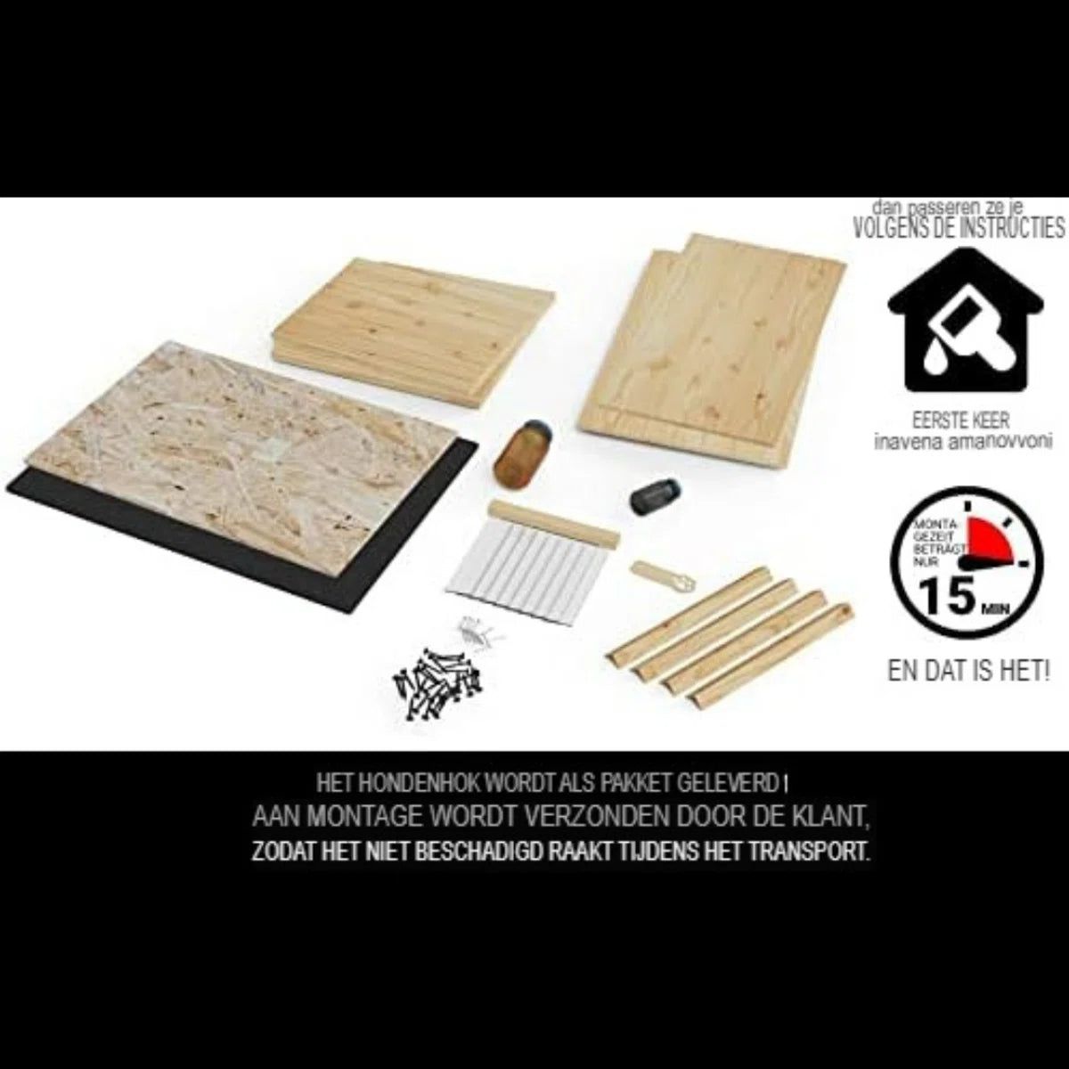Eenvoudig te monteren - Het houten hondenhok wordt geleverd in twee pakketten, eenvoudig in elkaar te zetten en zelf te schilderen. De montage is eenvoudig en duidelijk.