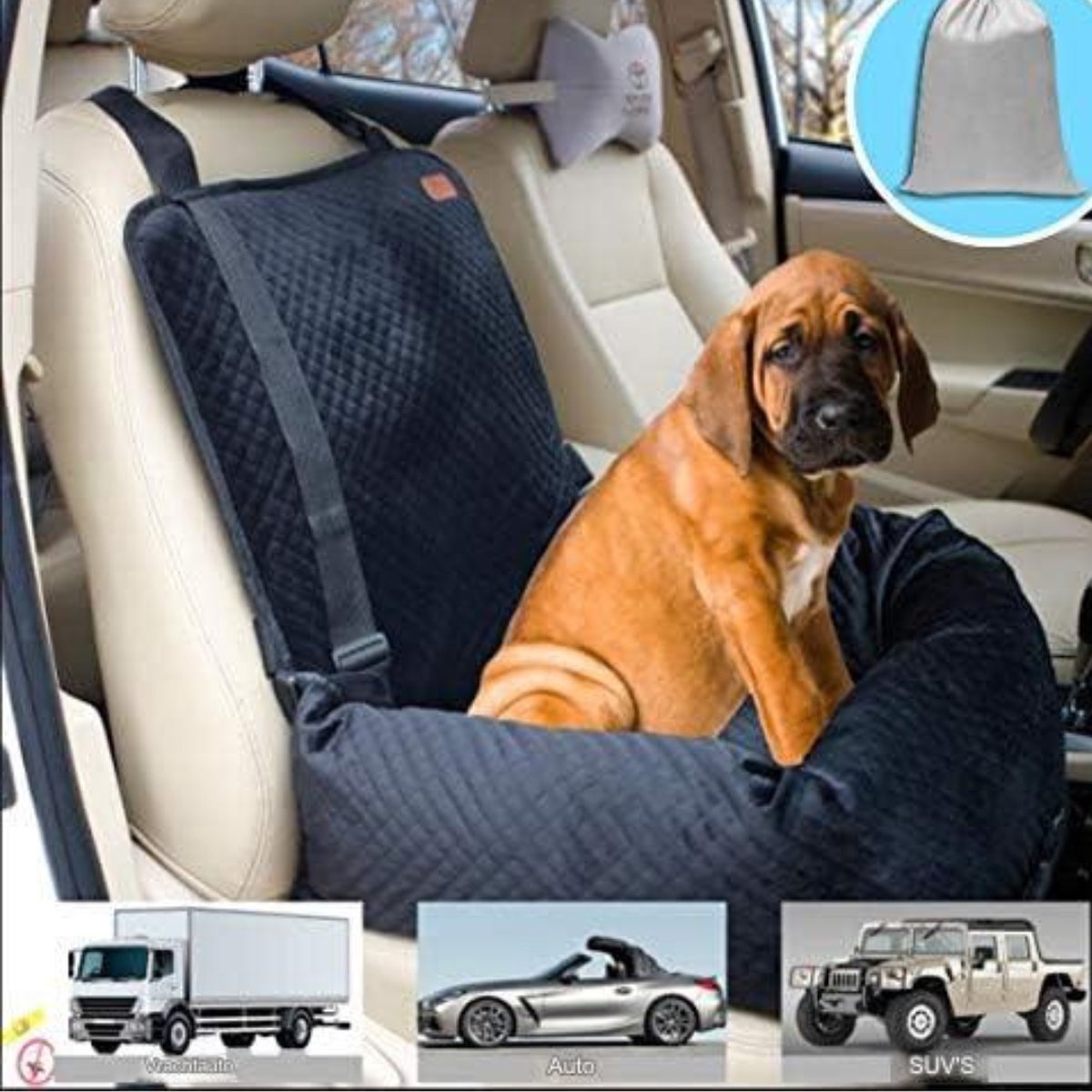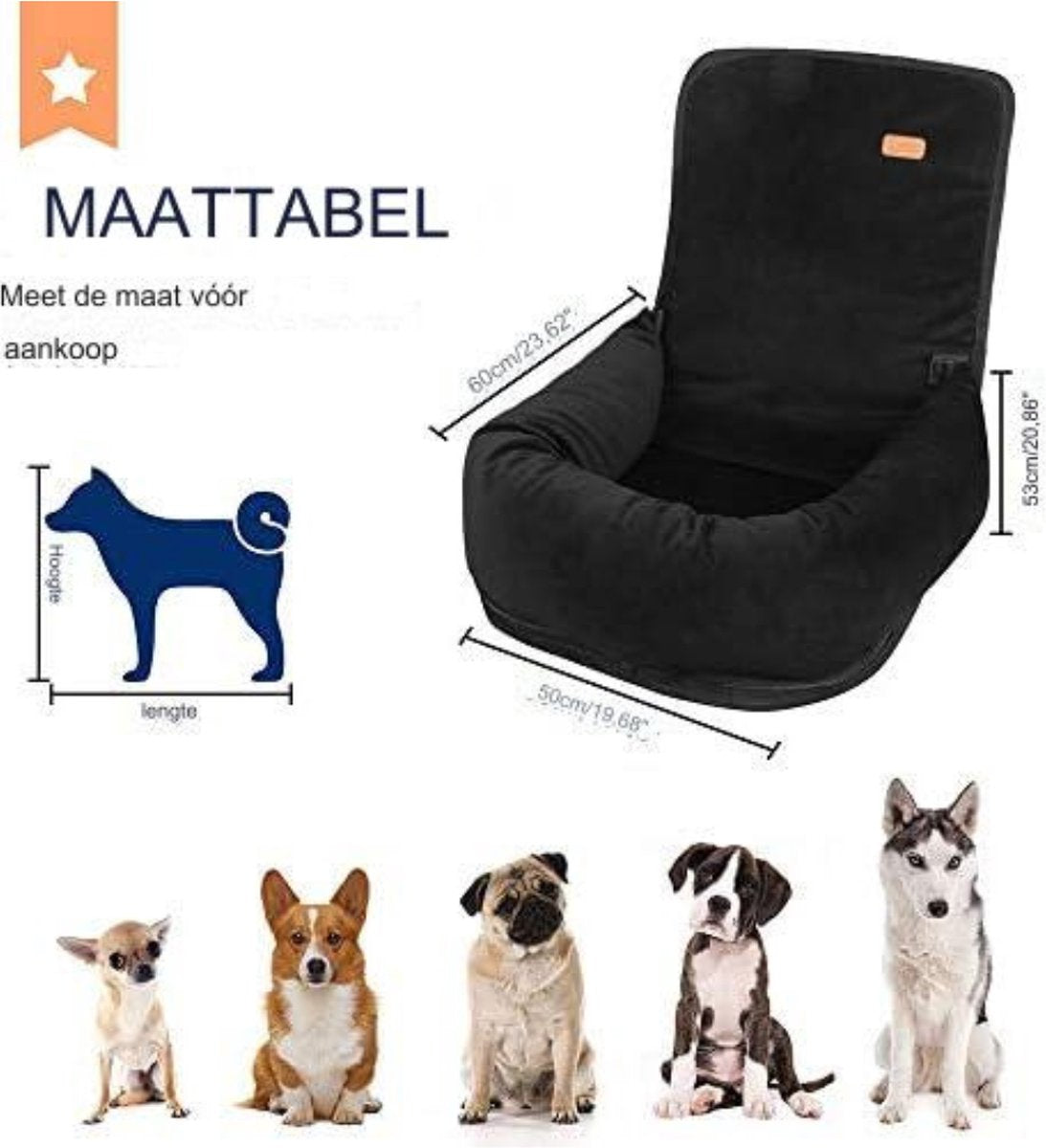 - Afmetingen autostoeltje - 21,65 inch (lengte) x 21,25 inch (breedte) x 12,99 inch (hoogte), is gemakkelijk geschikt voor kleine en middelgrote honden en katten onder de 40 pond/18 kg (zoals buldoggen, labrador honden, York honden, enz.) Geschikt voor bijna alle soorten voertuigen, auto's, vrachtwagens, SUV's, auto's.