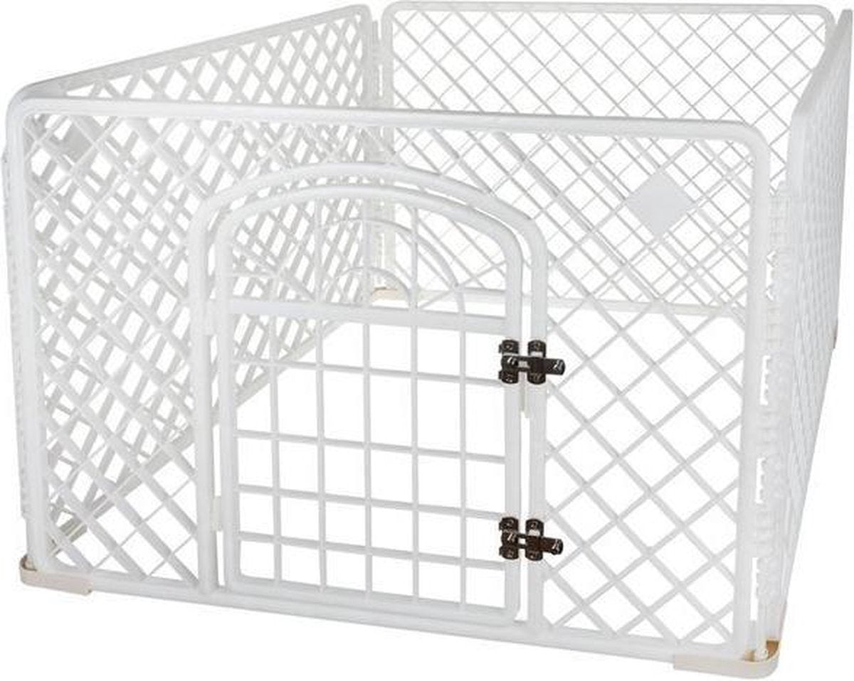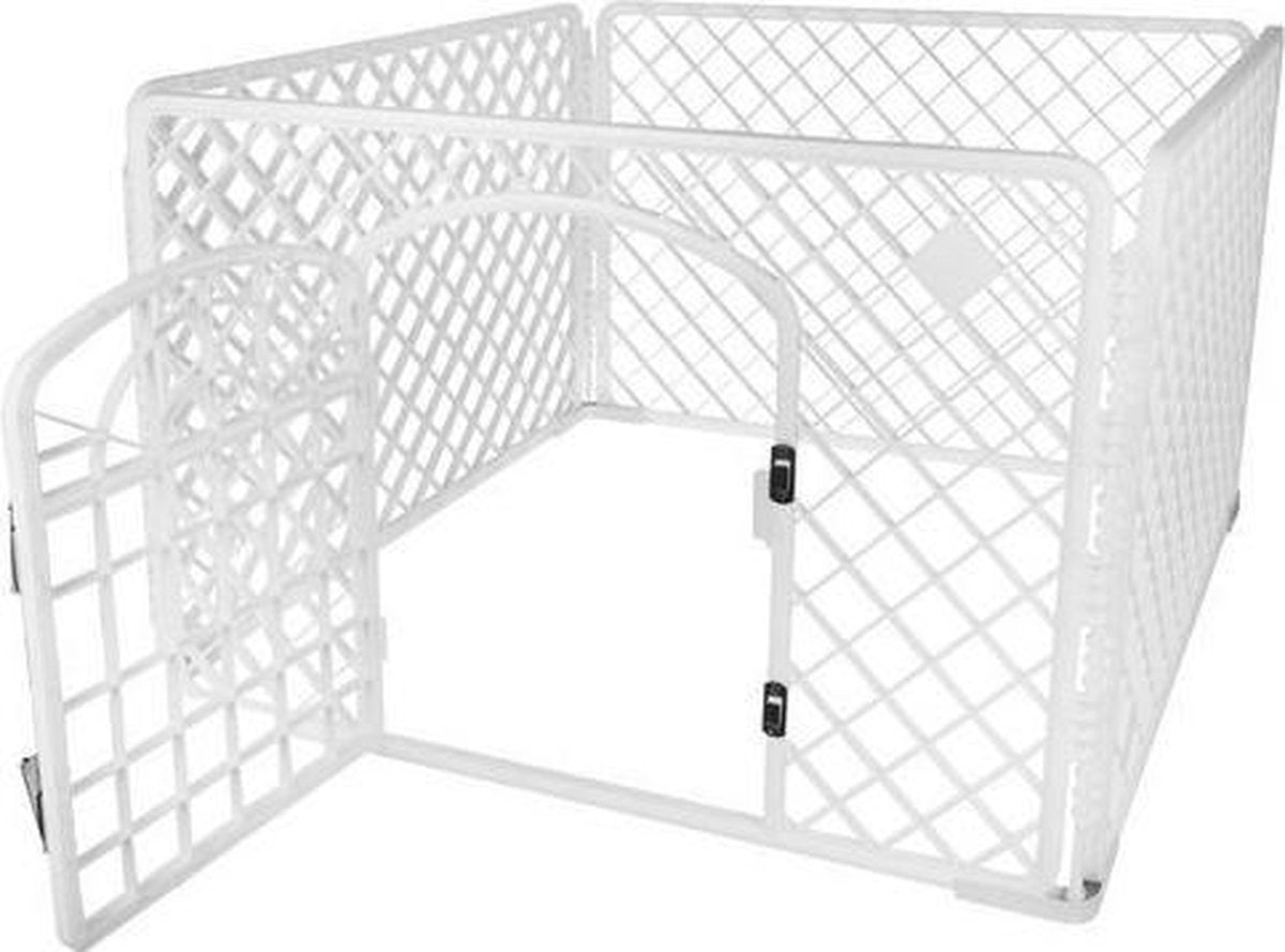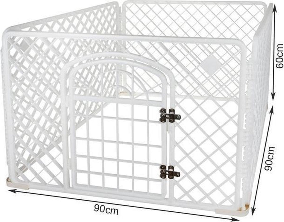Hondenren - Puppyren - Box voor hond/puppy - Bench - Kooi - Ren - Wit - Transporteerbaar - Met poortje - 90X90X60CM