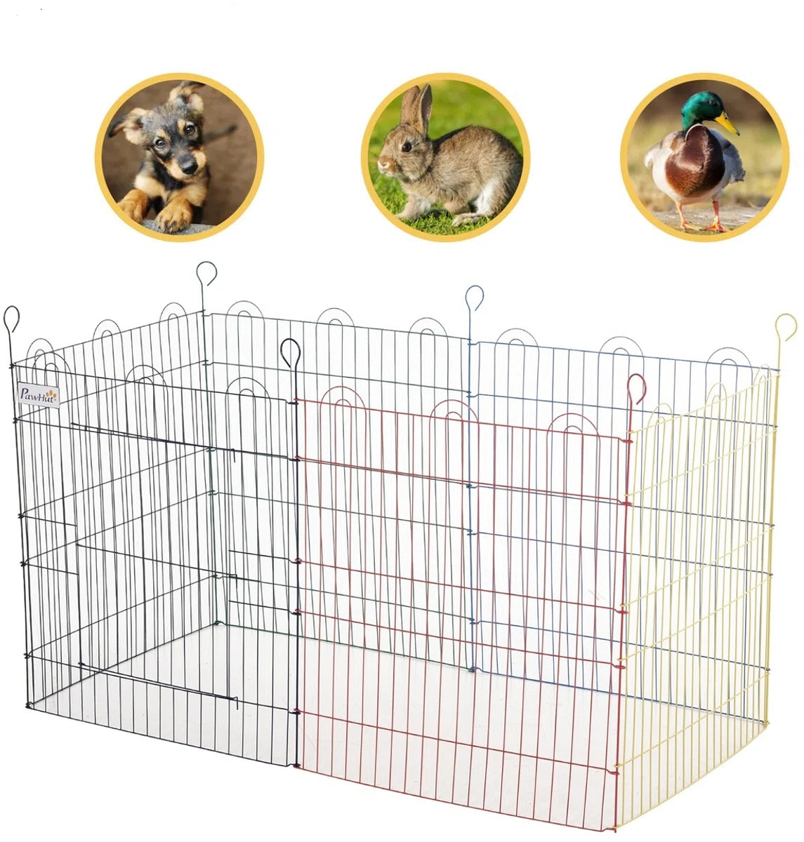 6 haringen garanderen de stabiliteit van de box. Dankzij de opvouwbare constructie is de box gemakkelijk te vervoeren en op te bergen wanneer deze niet wordt gebruikt. Het wordt geleverd met een doorloopdeur waardoor je huisdier gemakkelijk naar binnen kan. De ingebouwde vergrendelbare grendel voorkomt dat je dieren uitbreken en houdt ze veilig binnen. Deze dierenbox kan zowel binnen als buiten worden gebruikt en je kunt hem in elke gewenste vorm plaatsen: zeshoek, vijfhoek, vierkant, driehoek enz ... Perfect voor je trouwe viervoeters!