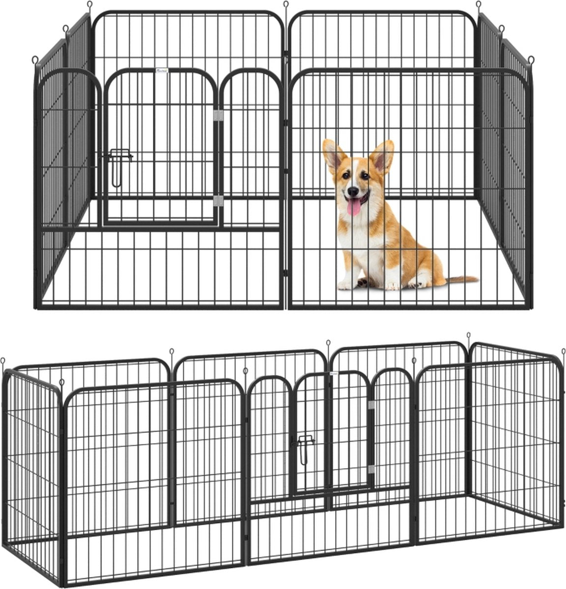 Hondenren XL - Puppyren - Hondenbench - Staal - 80 cm hoog - 640 cm omtrek - Uitbreidbaar