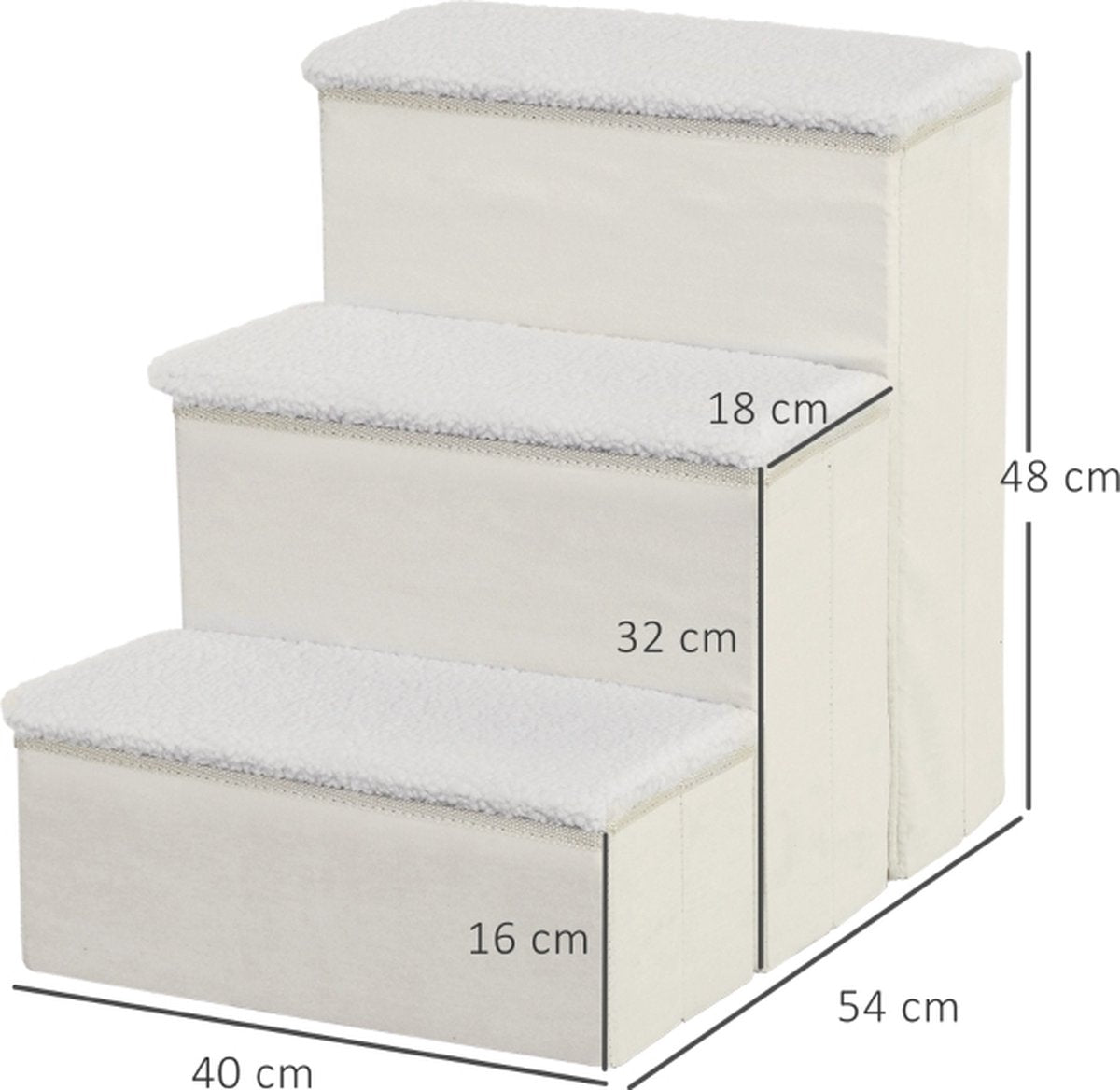 Hondentrap met 3 treden - Kattentrap - Huisdierentrap - Trapje - Opstapje - Wit - 40 x 54 x 48 cm