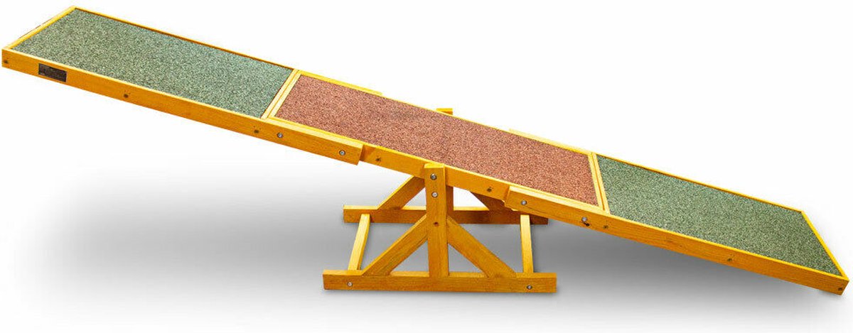 Oefening op de wip verhoogt het evenwicht, de behendigheid en de coördinatie van de hond.