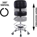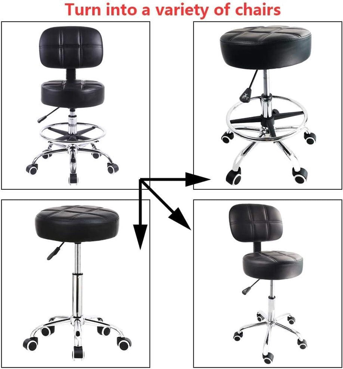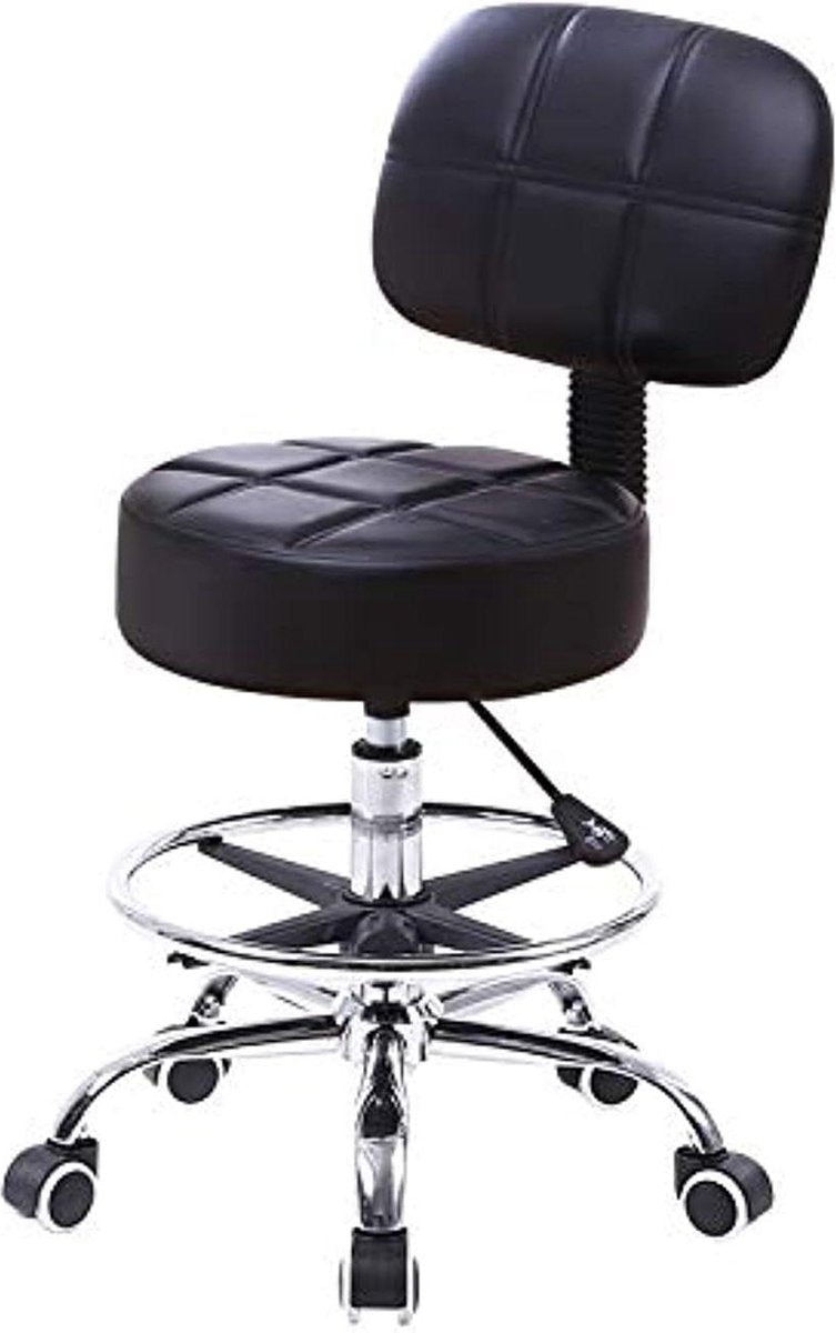 Hoogte verstelbare kruk met rugleuning - Salonstoel met wieltjes van PU-leer - Zwart