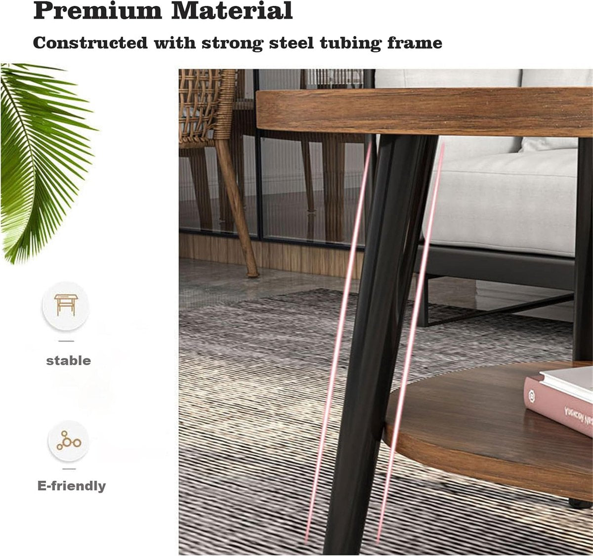 Houten bijzettafel, 2 niveaus, ronde salontafel met opbergruimte, salontafel rond, woonkamertafel, nachtkastje voor kleine ruimtes, bijzettafel voor woonkamer, slaapkamer, H x D 48 x40cm
