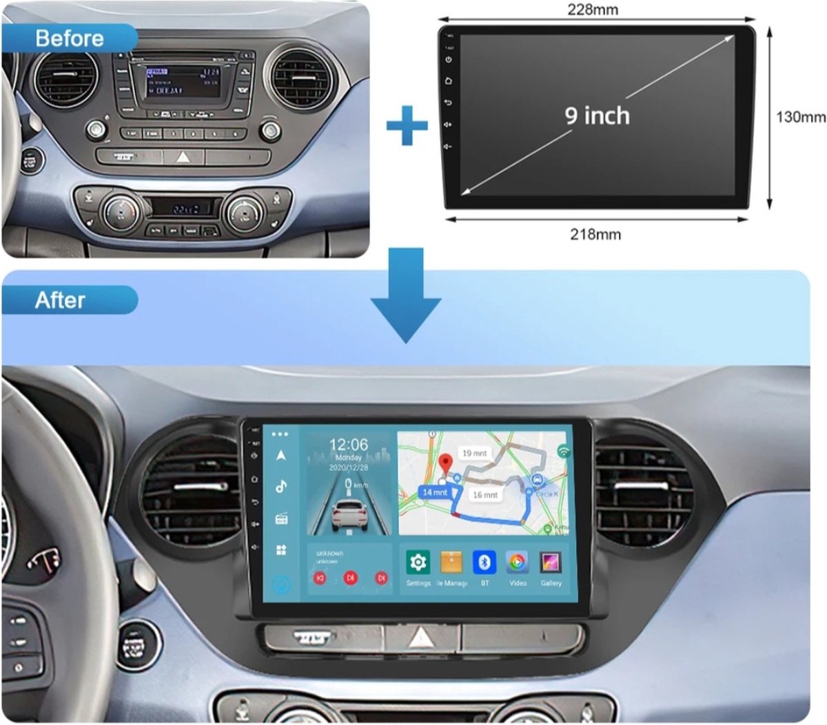 Hyundai i10 2012 - 2018 | Carplay & Android auto | 2GB & 32GB | Autoradio met navigatie | Radio scherm | 2012 2013 2014 2015 2016 2017 2018 | i 10