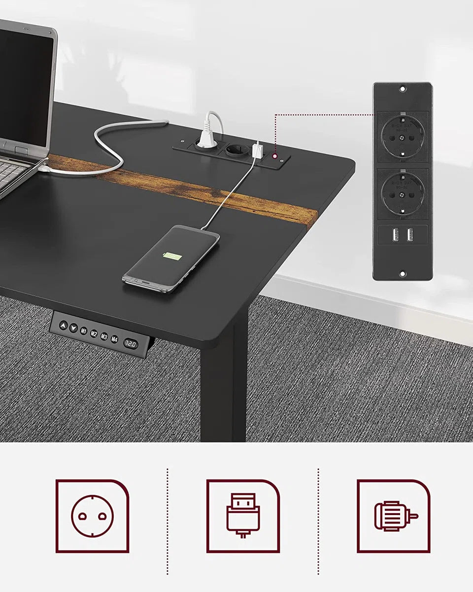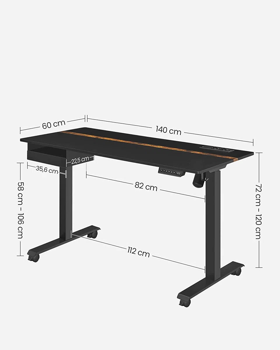 In hoogte verstelbaar bureau - Elektrisch bureau - Met stopcontacten - Traploos verstelbaar - 60 x 140 cm - Zwart