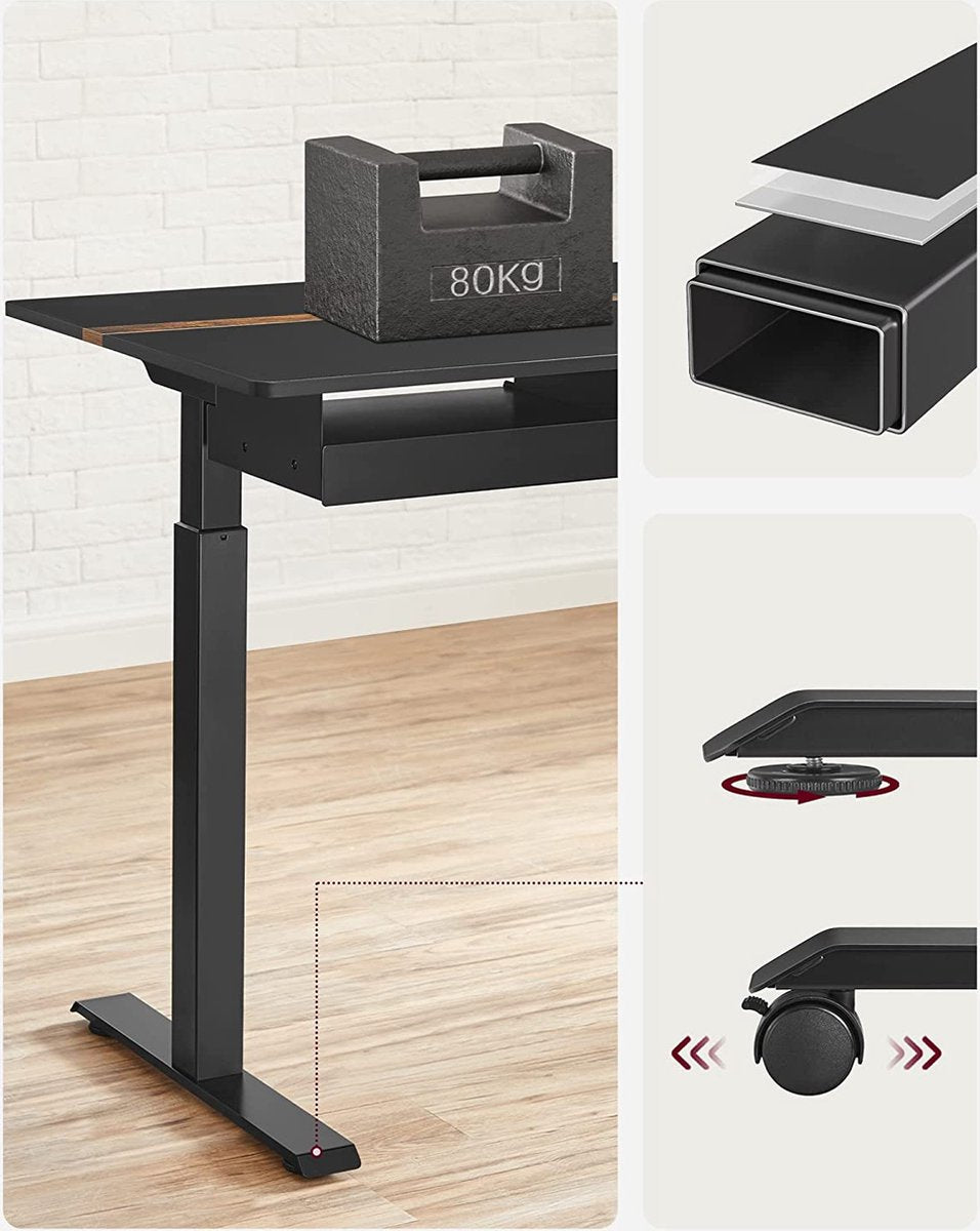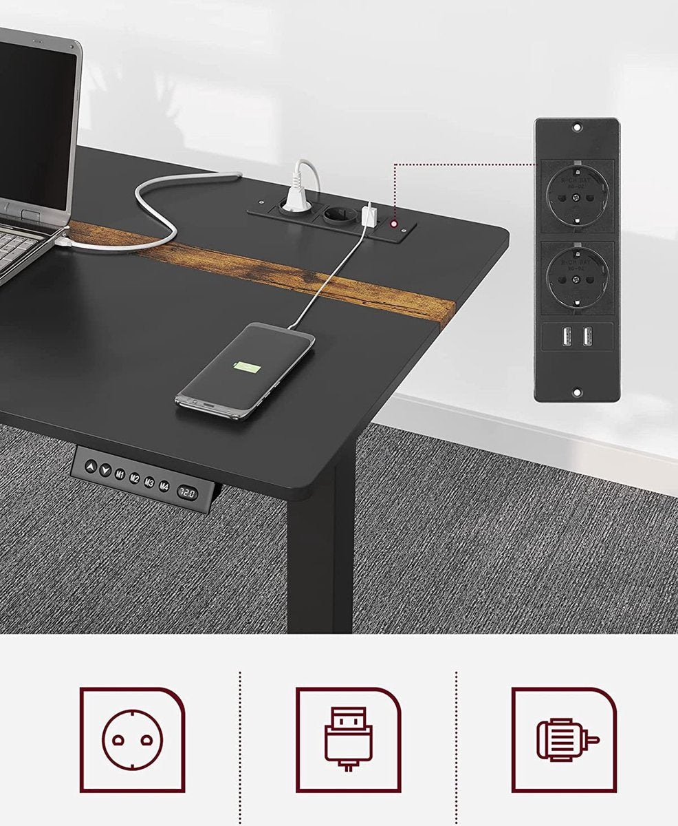 In hoogte verstelbaar bureau - Elektrisch bureau - Met stopcontacten - Traploos verstelbaar - 60 x 140 cm - Zwart