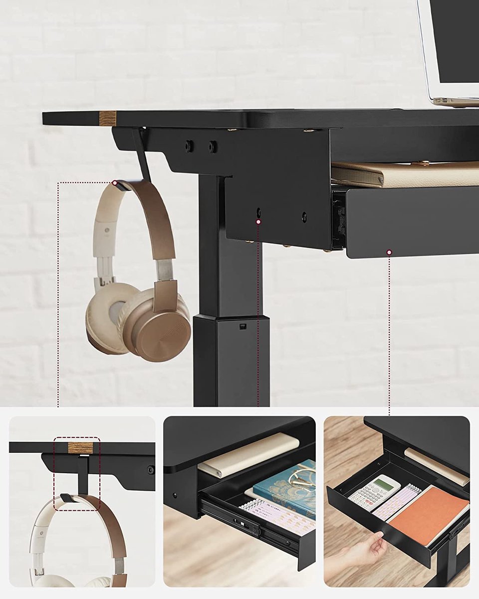 • [Lade & haak] Een kleine lade (22,7 x 32,5 x 4,0 cm) voor kantoorbenodigdheden, de bovenkant van de lade voor laptop of documenten; de haak aan de zijkant kan worden gebruikt om hoofdtelefoons aan op te hangen voor gemakkelijke toegang