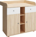 Infantastic - Babycommode met 2 grote lades en 5 vakken - Ladekast met Opbergrumte - Veelzijdig Omkleedmeubel met Organiser - 90x69x92 cm (LxBxH) - Eiken-Fineer