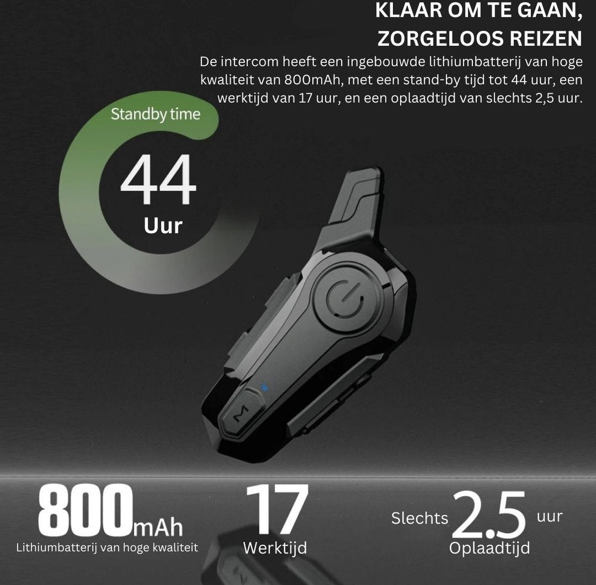 Wil je tijdens het motorrijden ook bellen? Met deze intercom wordt dat super eenvoudig! Veilig en comfortabel in contact blijven, zonder je aandacht van de weg te halen. Mis geen enkel moment, zowel op als naast de motor!
