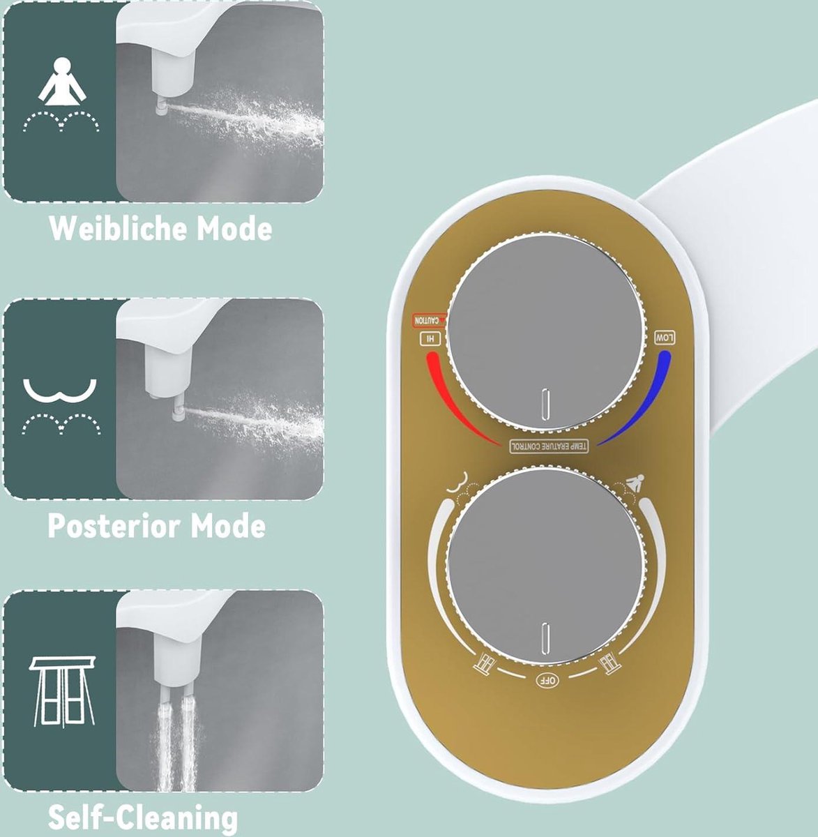 • Sproeiers: Dubbele sproeiers voor achter- en damesreiniging