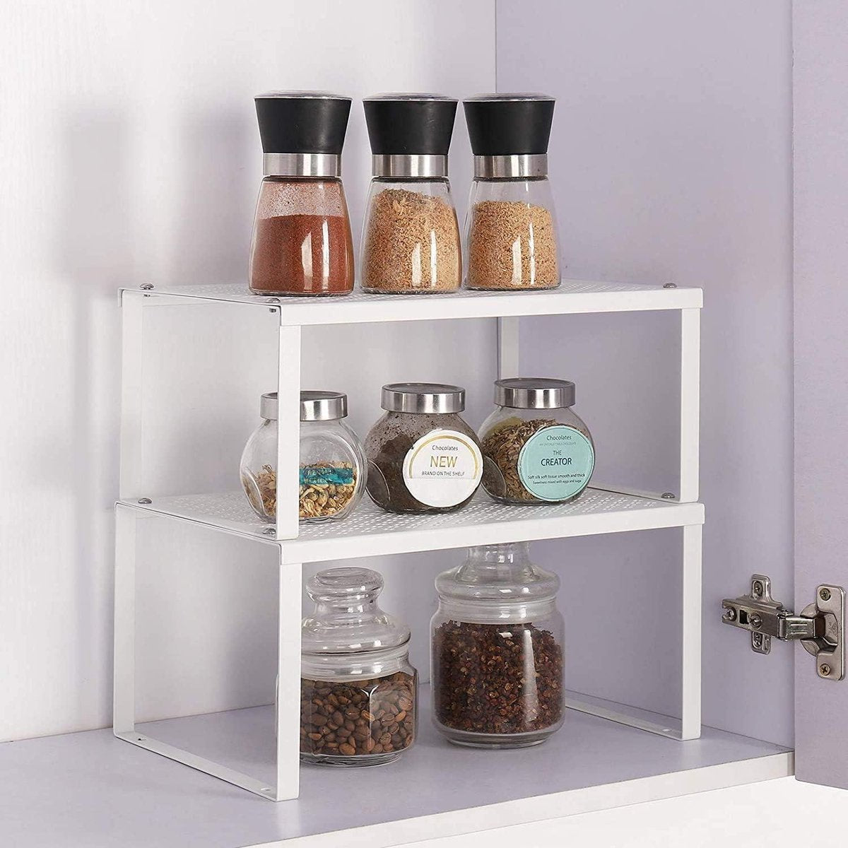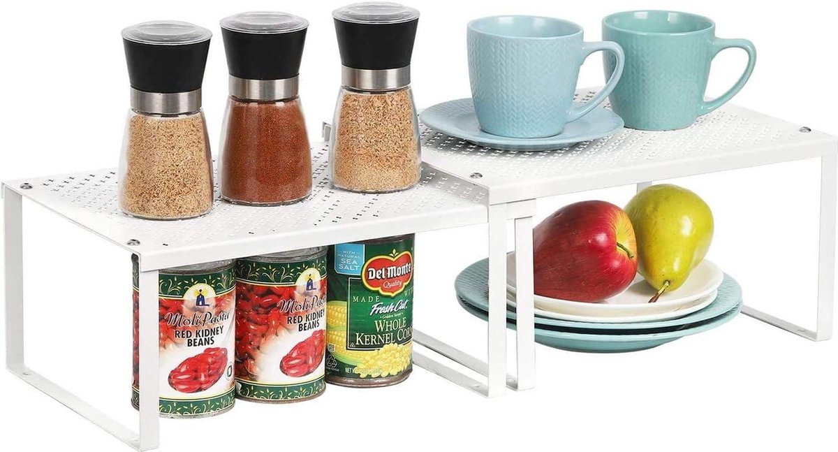 Inzetrek voor keukenkast - stapelbaar en uitbreidbaar - set van 2 keukenrekken - opbergrekken voor specerijen en conservenblikjes Opbergrek