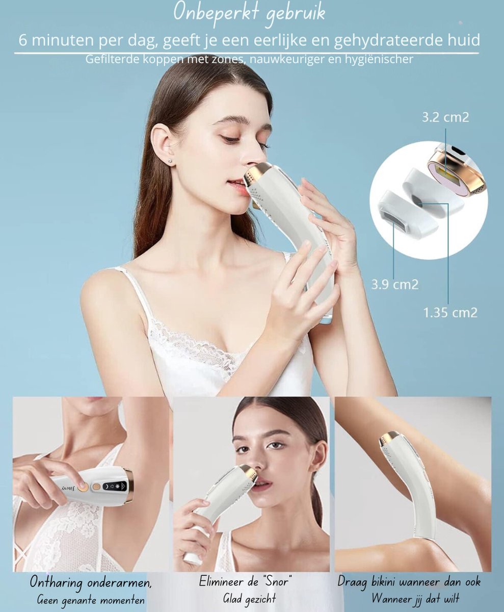 Geniet van salonwaardige resultaten vanuit het comfort van je eigen huis en ervaar een pijnloze ontharingsroutine met langdurige effecten!