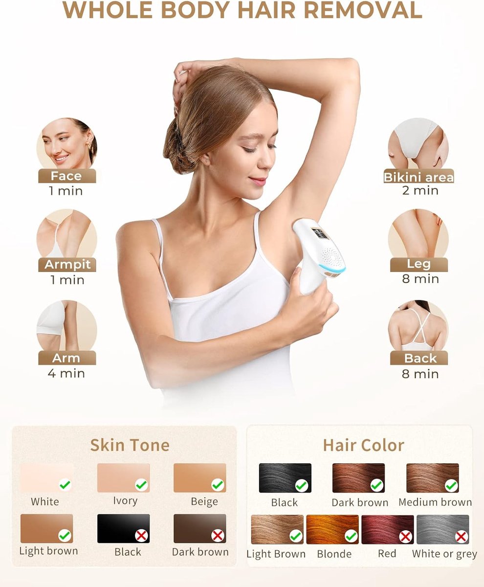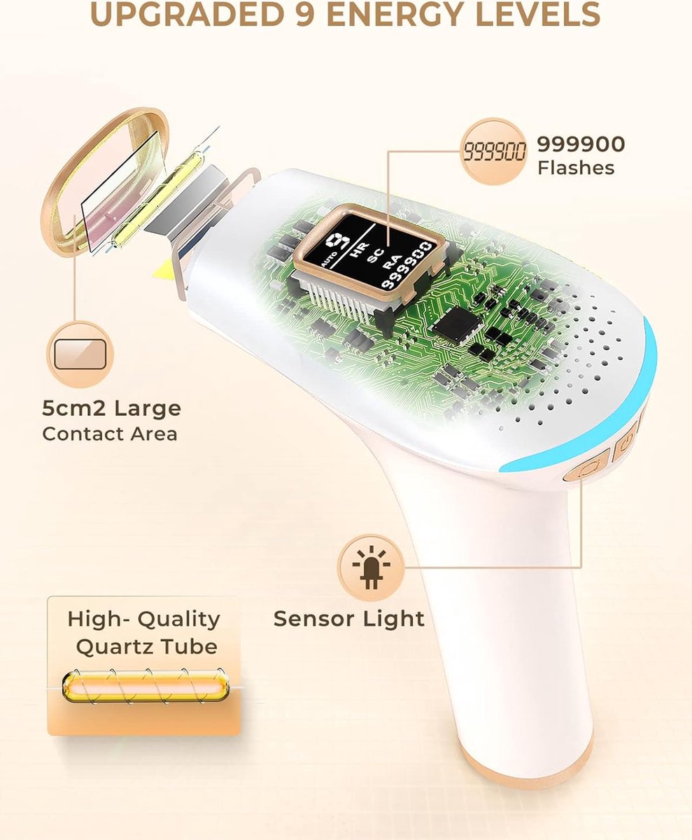 - Dit IPL ontharingsapparaat heeft maar liefst 999.900 flitsen, waardoor je langdurig kunt genieten van een gladde huid.