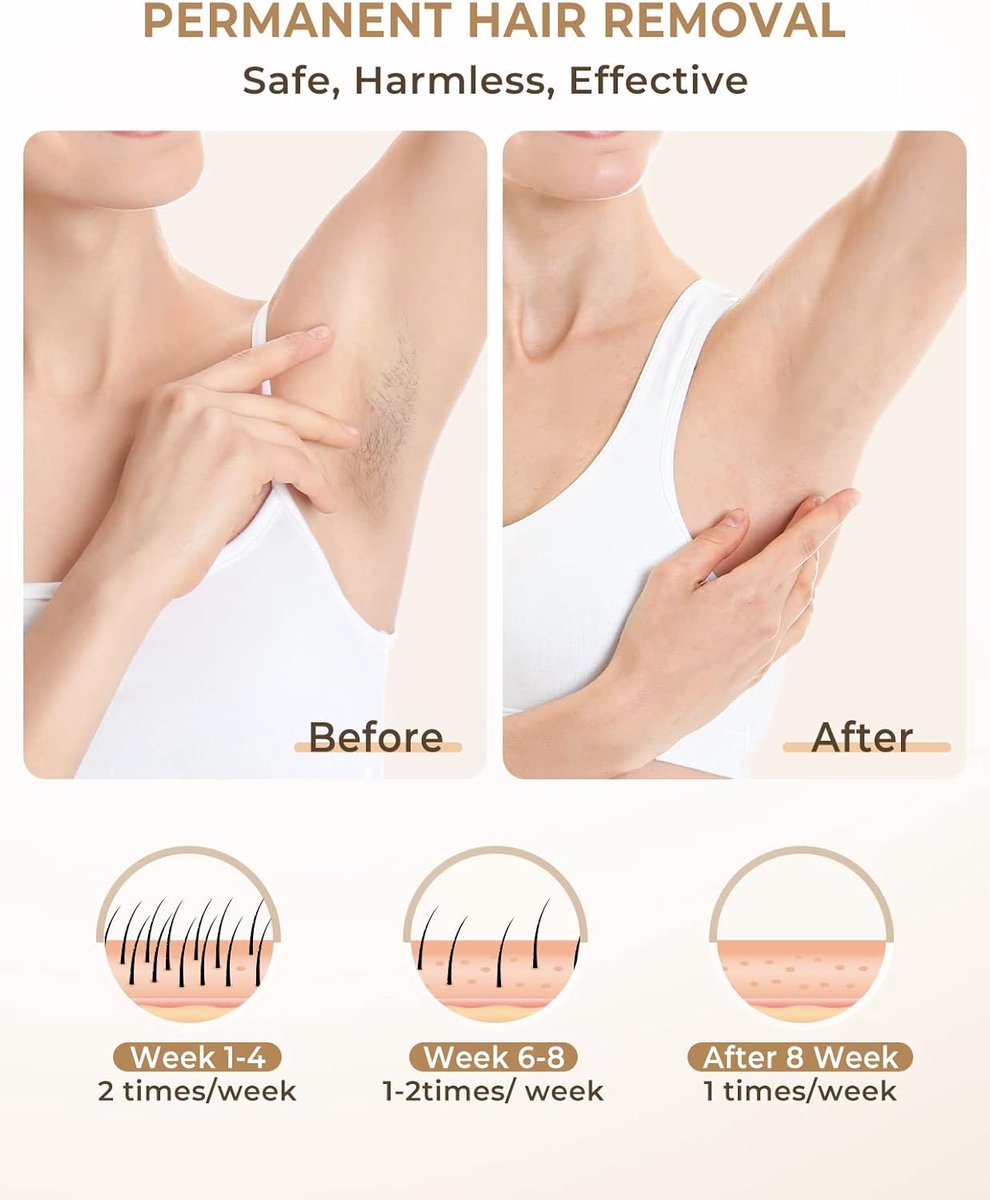 Na slechts 4 tot 6 behandelingen met dit professionele IPL ontharingsapparaat merk je al een duidelijk resultaat. De haartjes worden dunner en de groei neemt af, wat zorgt voor een langdurig gladde huid.