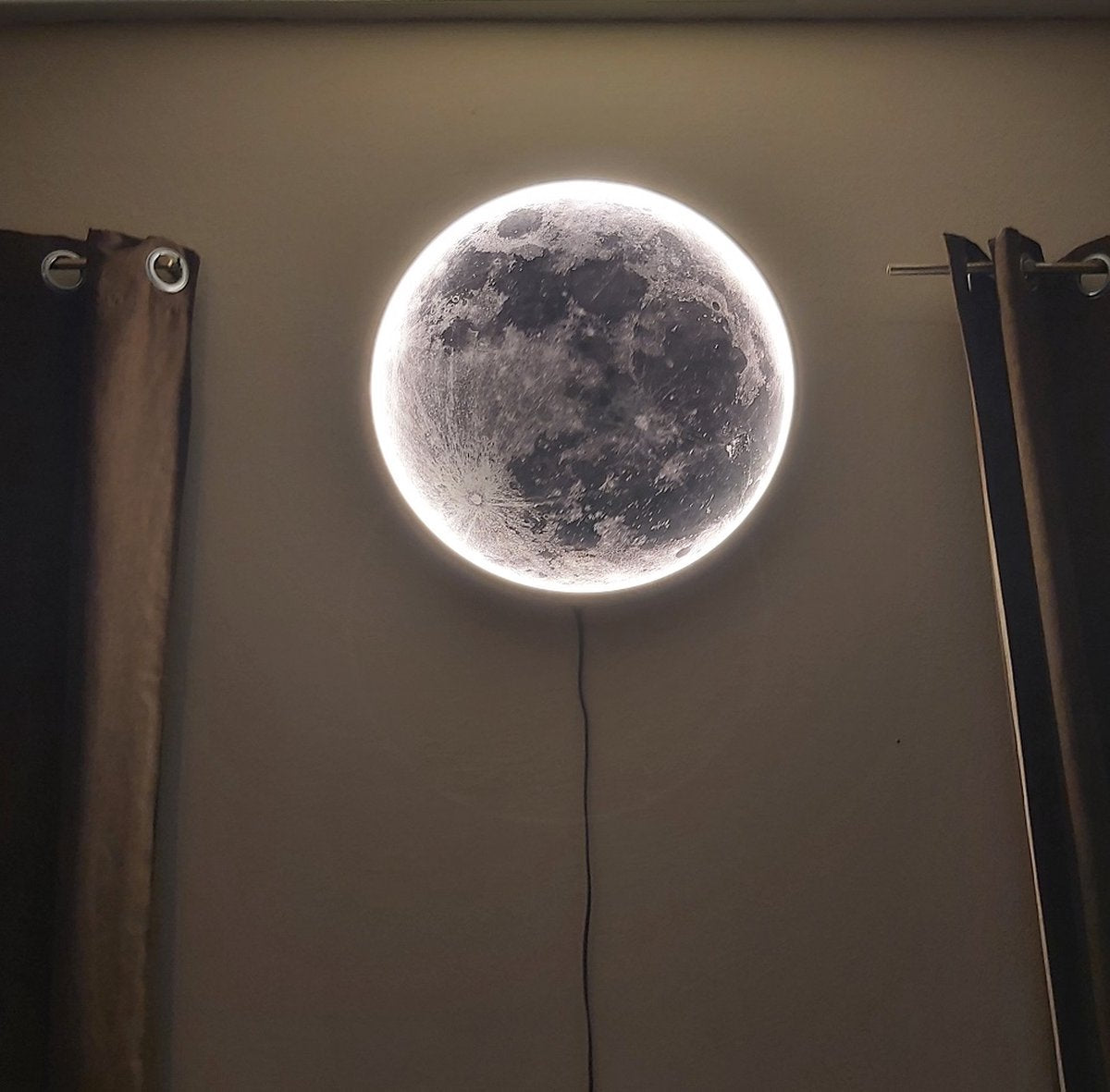 De lamp kan aan de muur worden gemonteerd voor een naadloze look en het maanontwerp voegt een unieke en stijlvolle touch toe aan elke ruimte.