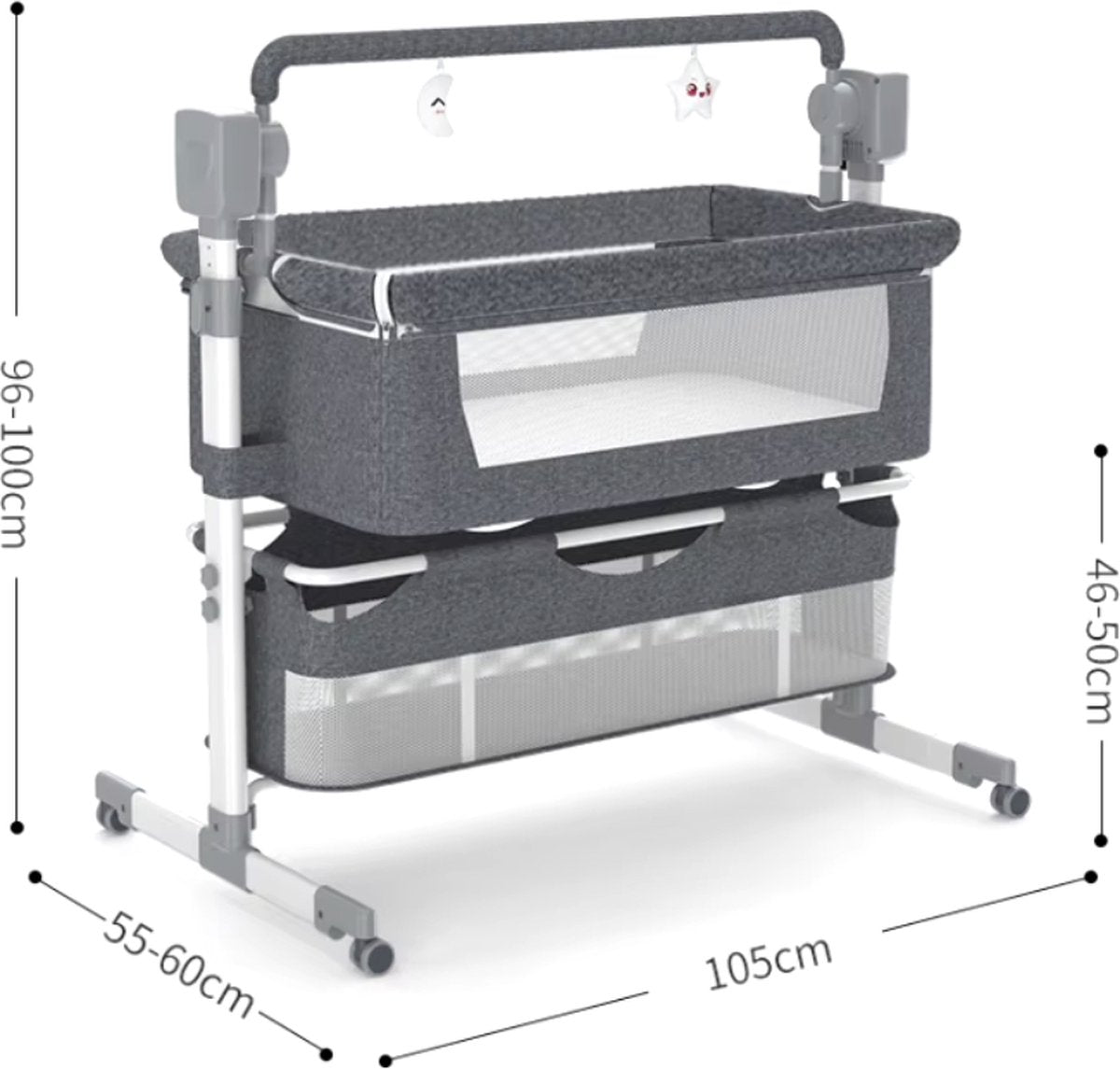- Draagbaar en Verplaatsbaar: Dankzij de stevige constructie met wieltjes kunt u de wieg gemakkelijk verplaatsen en overal in huis plaatsen.