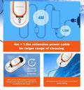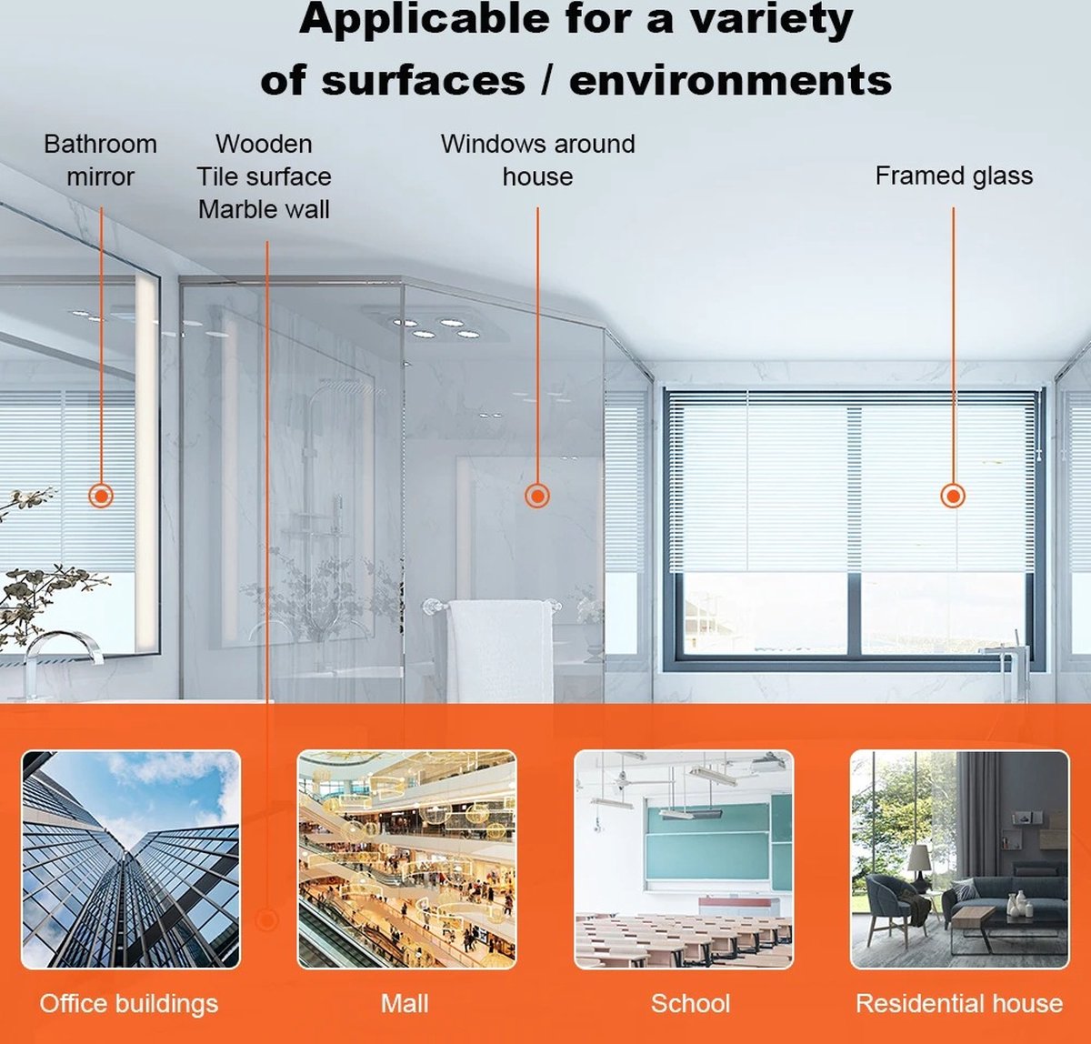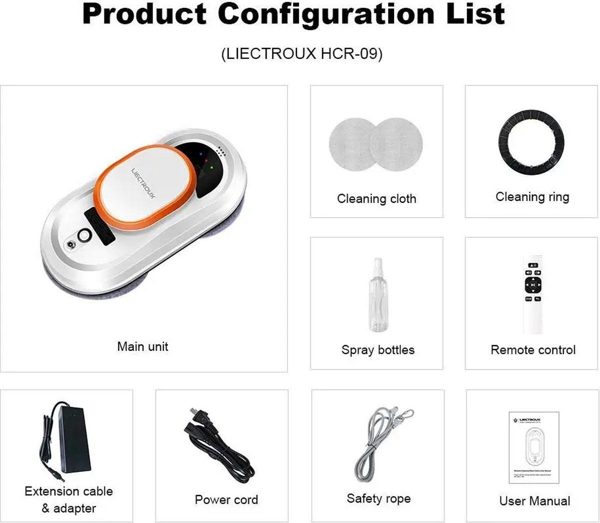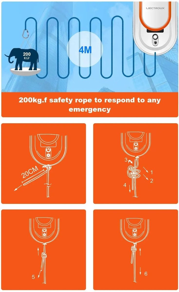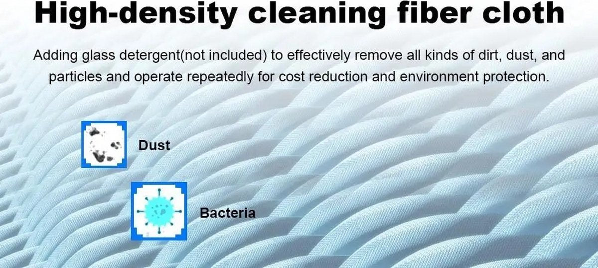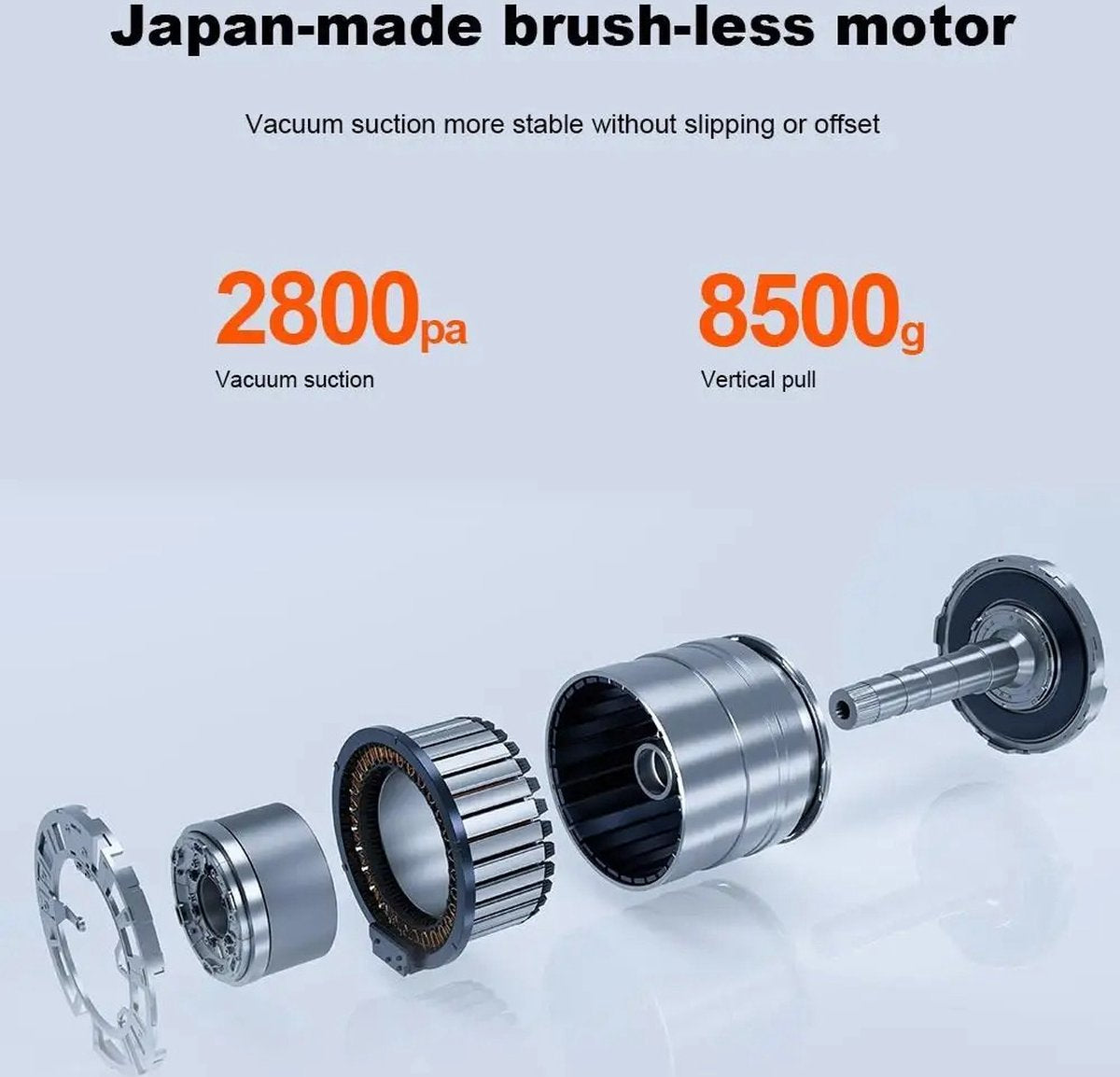 Met een zuigkracht van 3000PA en een vermogen van 800 watt levert deze robot betrouwbare prestaties, ondersteund door een robuuste veiligheidskabel van 4 meter. Het apparaat werkt stil met een geluidsniveau van 65 decibel en is geschikt voor verschillende oppervlakken zoals enkel- en dubbelglas, marmer, tegels en spiegels.