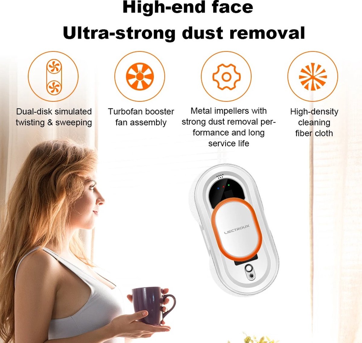 Met een snelle reinigingssnelheid van slechts 2 minuten per vierkante meter en een ingebouwd ononderbroken stroomvoorzieningssysteem (UPS), geniet je van een soepele en efficiënte reiniging zonder onderbrekingen. Deze robot is ideaal voor grote ramen, moeilijk bereikbare plekken en zorgt voor een glanzend schoon resultaat.