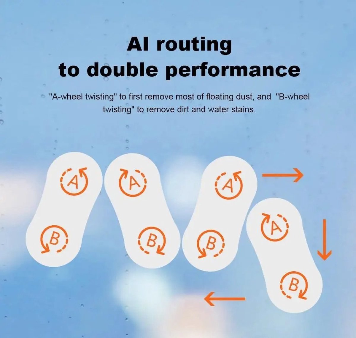 De robot is uitgerust met dubbele tandwielen en krachtige dubbele waternevelsproeiers, wat zorgt voor een grondige reiniging, zelfs bij frameloze ramen. De draadloze bediening via afstandsbediening of app biedt gebruiksgemak, terwijl het zichtbare waterreservoir je in staat stelt om de status van het waterniveau eenvoudig bij te houden.