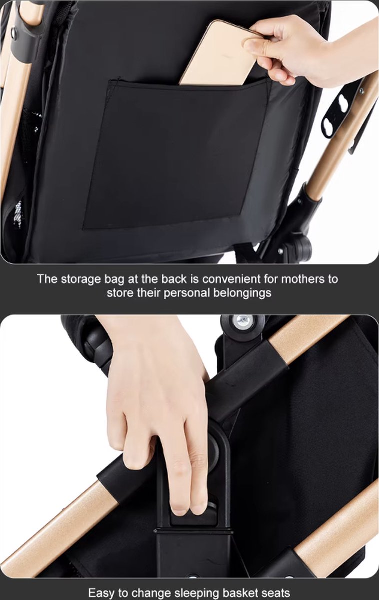 - Stijlvol en functioneel: De roze en zwart kleurencombinatie geven de kinderwagen een luxe uitstraling.
