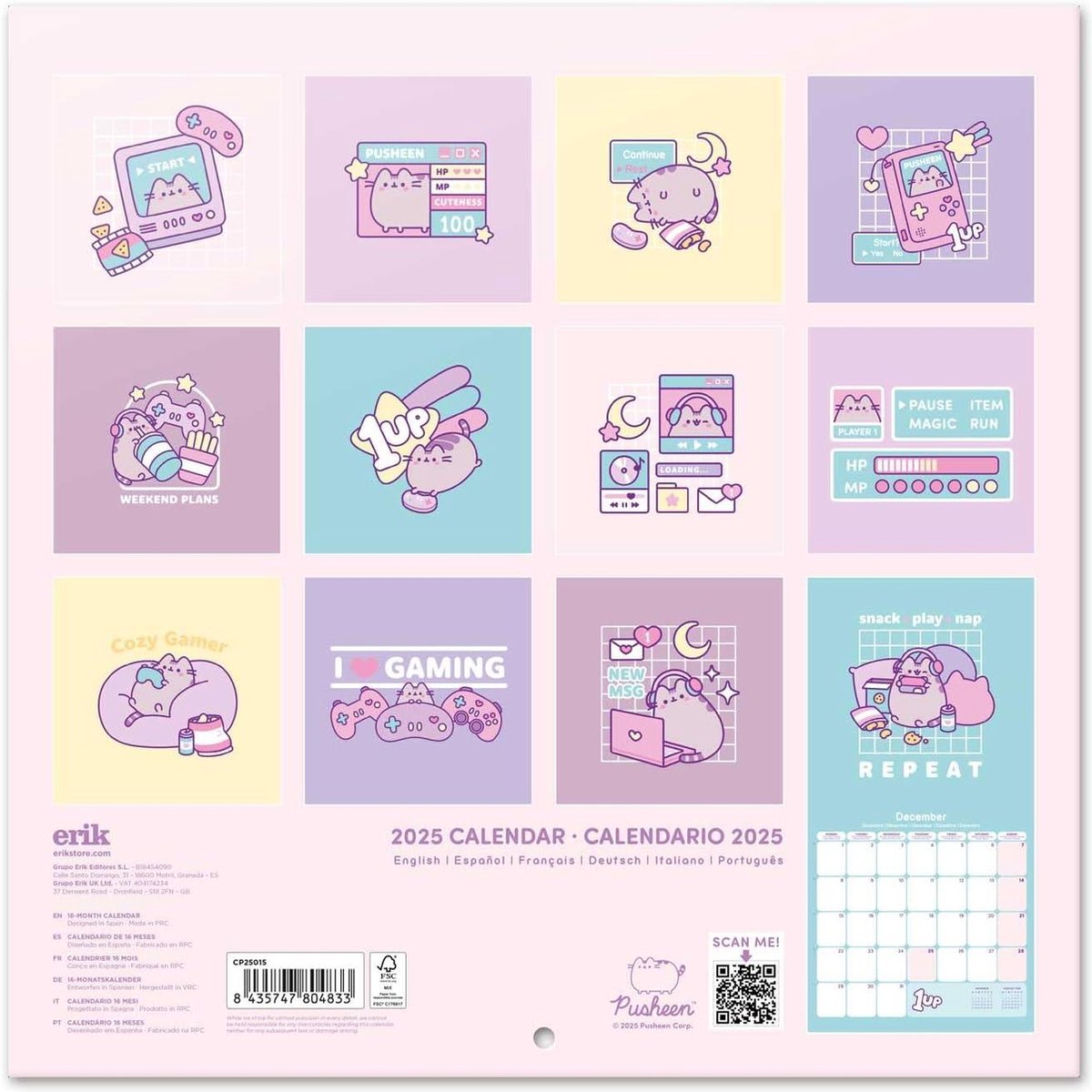 Kalender 2025 30x30 cm Pusheen Wandkalender 12 Maanden - Fsc-gecertificeerde Broschürenkalender - Inclusief Bonus 4 Maanden kalender 2025 maandkalender