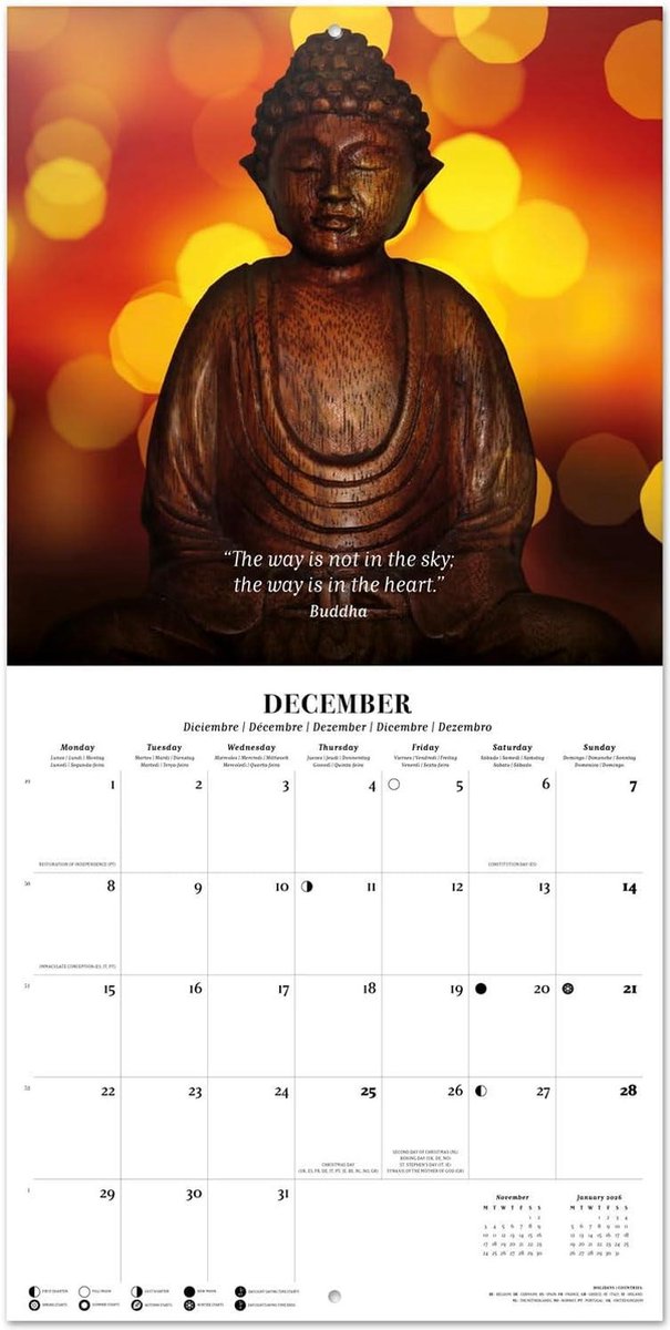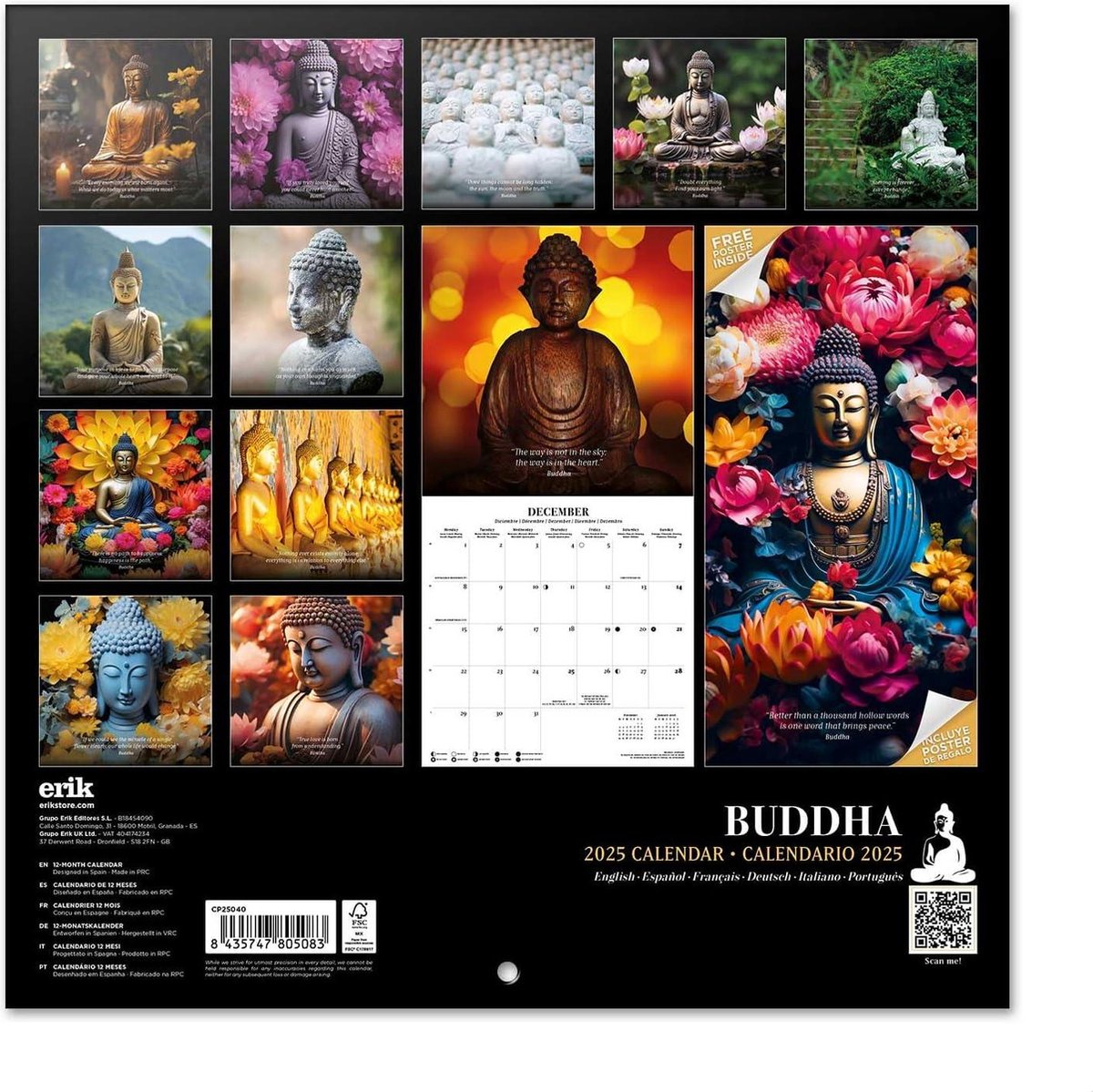 Kalender Buddha 2025 - Broschürenkalender 30x30 cm - Fsc-gecertificeerde wandkalender - 12 Maanden + poster kalender 2025 maandkalender