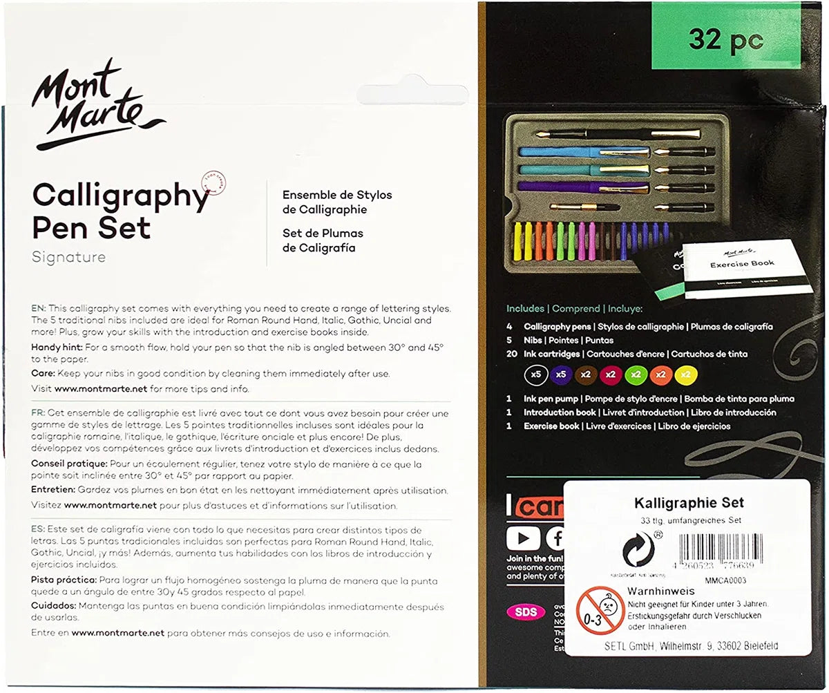DIVERSE MOGELIJKHEDEN - Door de grote selectie aan kleuren kunnen geweldige effecten worden bereikt bij het schrijven. De afzonderlijke kleuren zijn zeer gemakkelijk te mengen en met een beetje oefening kunnen prachtige overgangen en verlopen worden bereikt. De meegeleverde instructies in het Engels, Frans en Spaans bevatten geïllustreerde stapsgewijze afbeeldingen die u dichter bij verschillende stijlen van kalligrafie brengen.