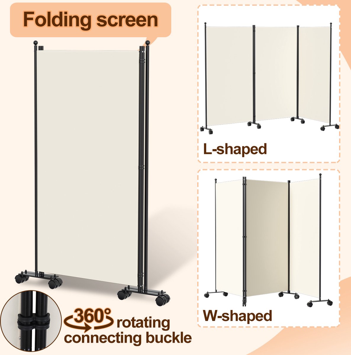 [Flexibele mobiliteit en stabiliteit] Onze scheidingswanden zijn uitgerust met 8 zwenkwielen waarmee ze moeiteloos kunnen worden verplaatst. De wielen zijn voorzien van remmen om de kamerschermen indien nodig stevig op hun plaats te houden.