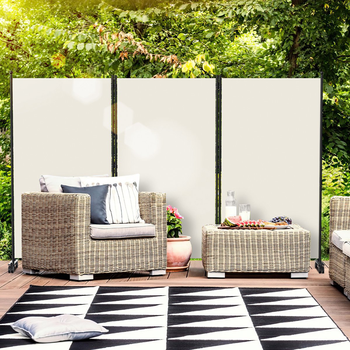 Kamerscherm op wielen met 3 panelen - 263 x 181 cm - Kamerverdeler Tuin Spaanse Muurscheiding Beige