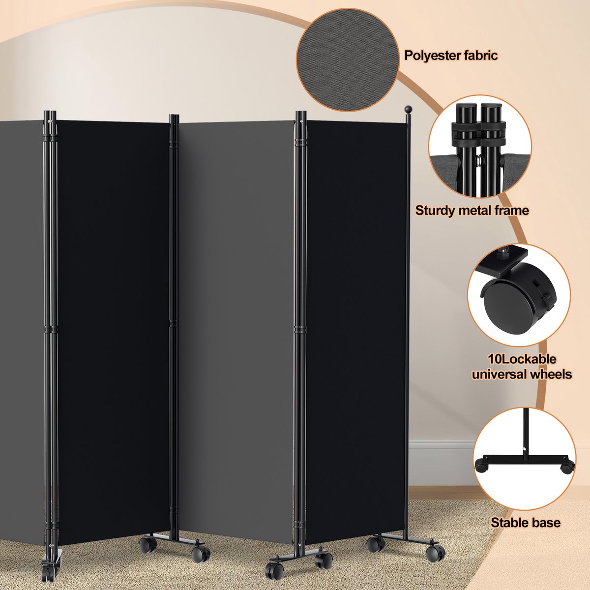 [Flexibele mobiliteit en stabiliteit] Onze scheidingswanden zijn uitgerust met 10 zwenkwielen waarmee ze moeiteloos kunnen worden verplaatst. De wielen zijn voorzien van remmen om de kamerschermen indien nodig stevig op hun plaats te houden.