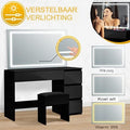 • Comfortabele pasvorm: Bij ons krijg je niet alleen de kaptafel met licht, spiegel en lades, maar ook de bijpassende kruk met bekleding direct. Zo is jouw make-uphoekje in een mum van tijd compleet.